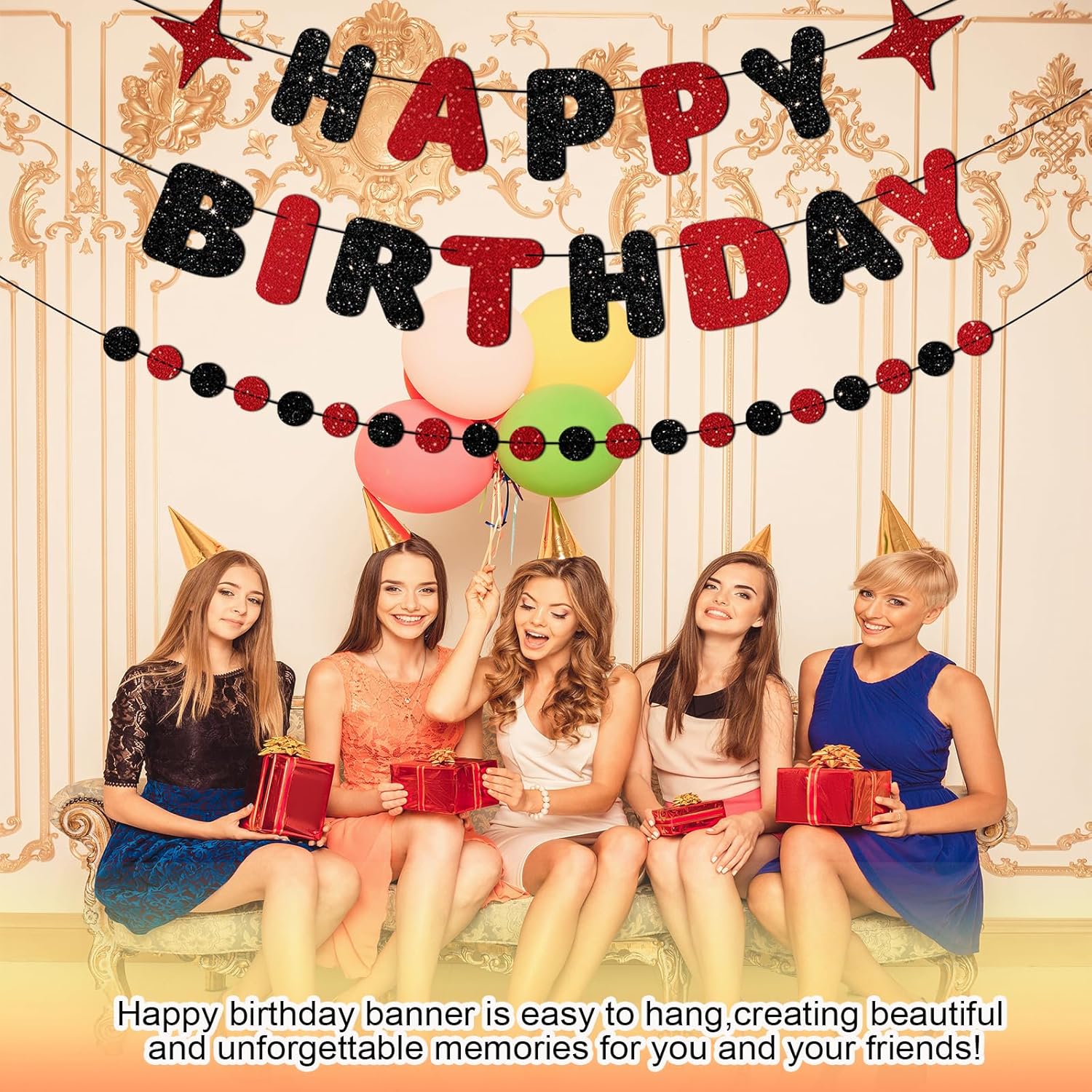 Red and Black Happy Birthday Banner Glitter Garland for Black and Red Decorations Happy Birthday Decorations for Women Men Boys Girls 25st 30st 40st 50th 60st Party Decor