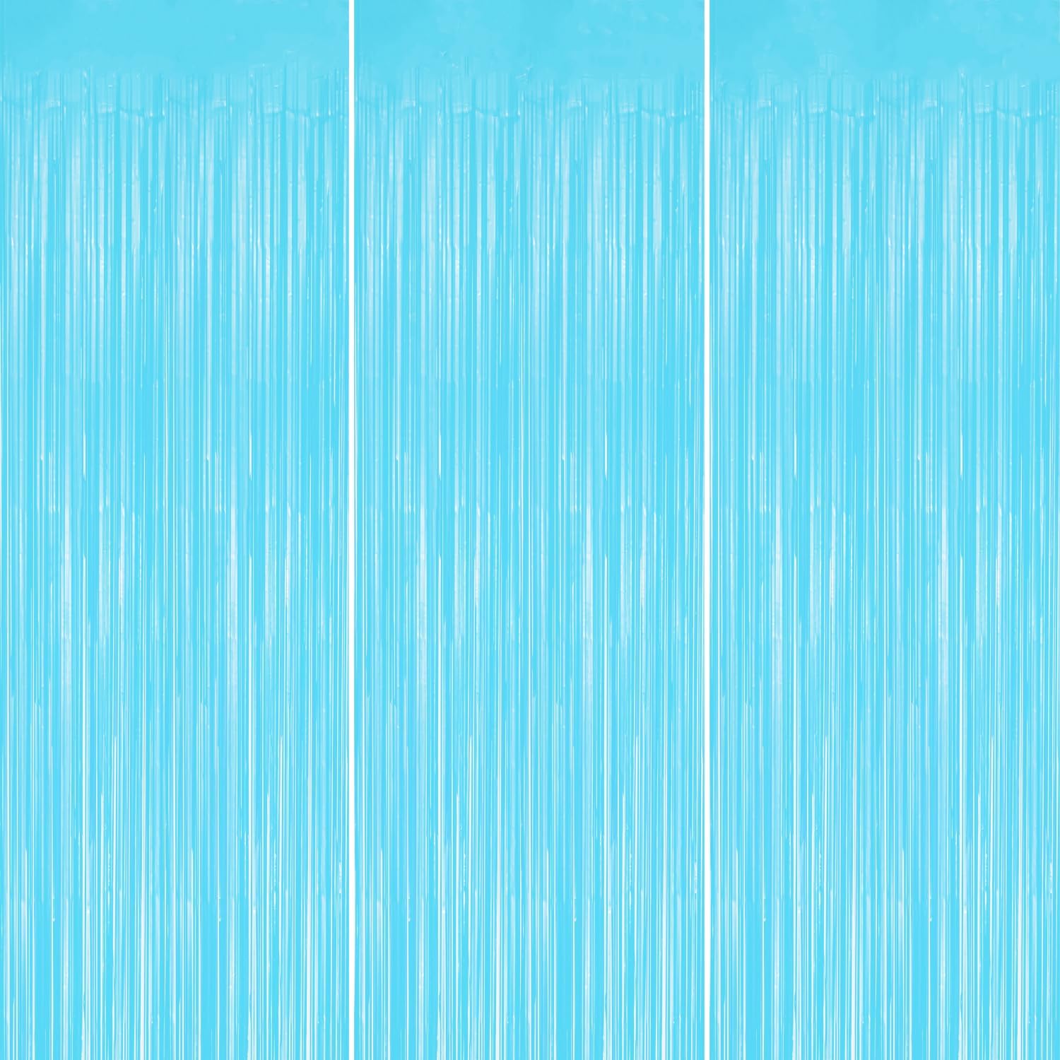 3 Pack Foil Fringe Backdrop - Pastel Blue Shiny Tinsel Curtains for Party Decoration/Photo Booth Props - 3.3x8.2 FT Metallic Foil Backdrop for Birthday, Wedding, Graduation, Christmas.
