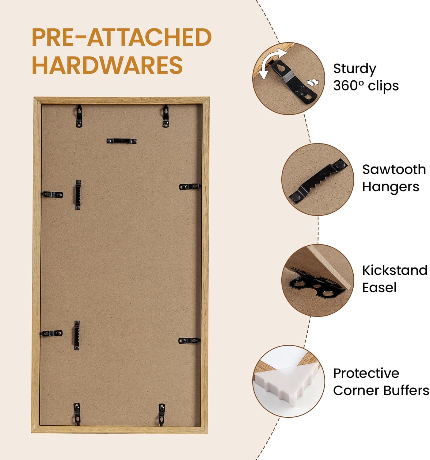 • 【Horizontal & Vertical Display】 The 9 x 18 wall picture frames has 2-side hanging hooks,You can wall mouted the frame in Horizontal & Vertical to decor your house pretty.With the rotating tab,you can more easily remove the back - panel and put in photos, keep your art securely in place.