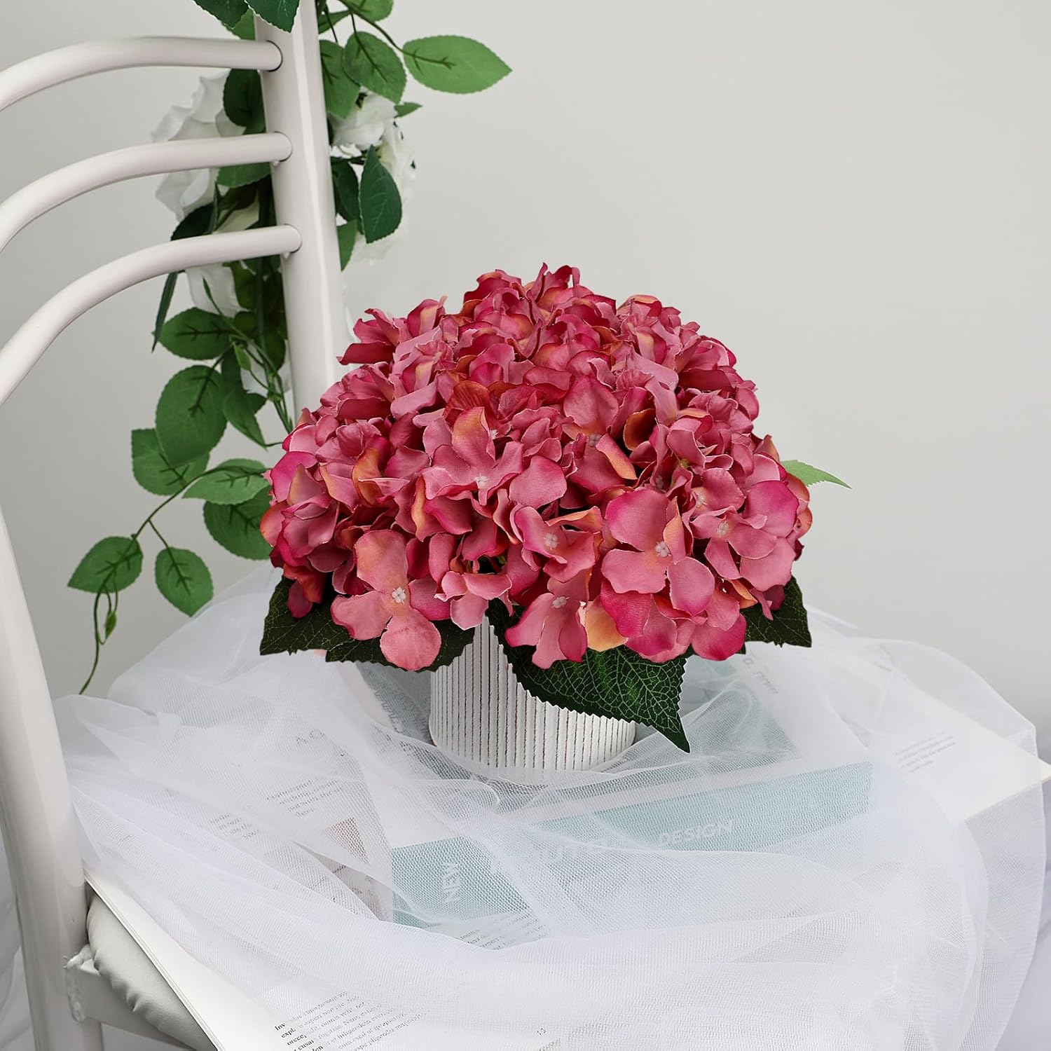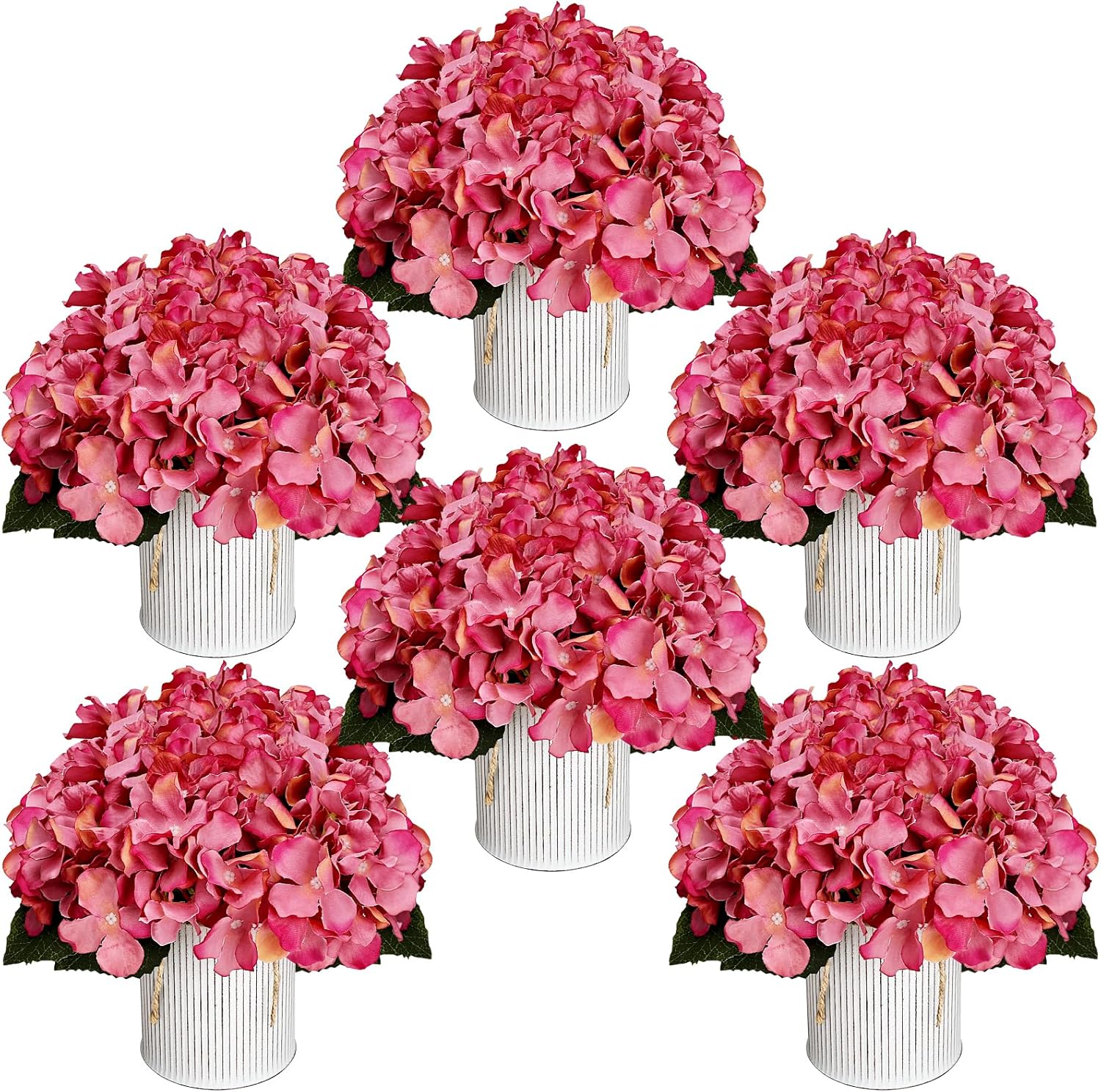 Flower Table Centerpieces - Set of 6 Floral Arrangement Artificial Wedding Hydrangeas Floral Arrangement with Rustic Metal Vase for Bridal Tea Party Event Decorations - Dusty Pink