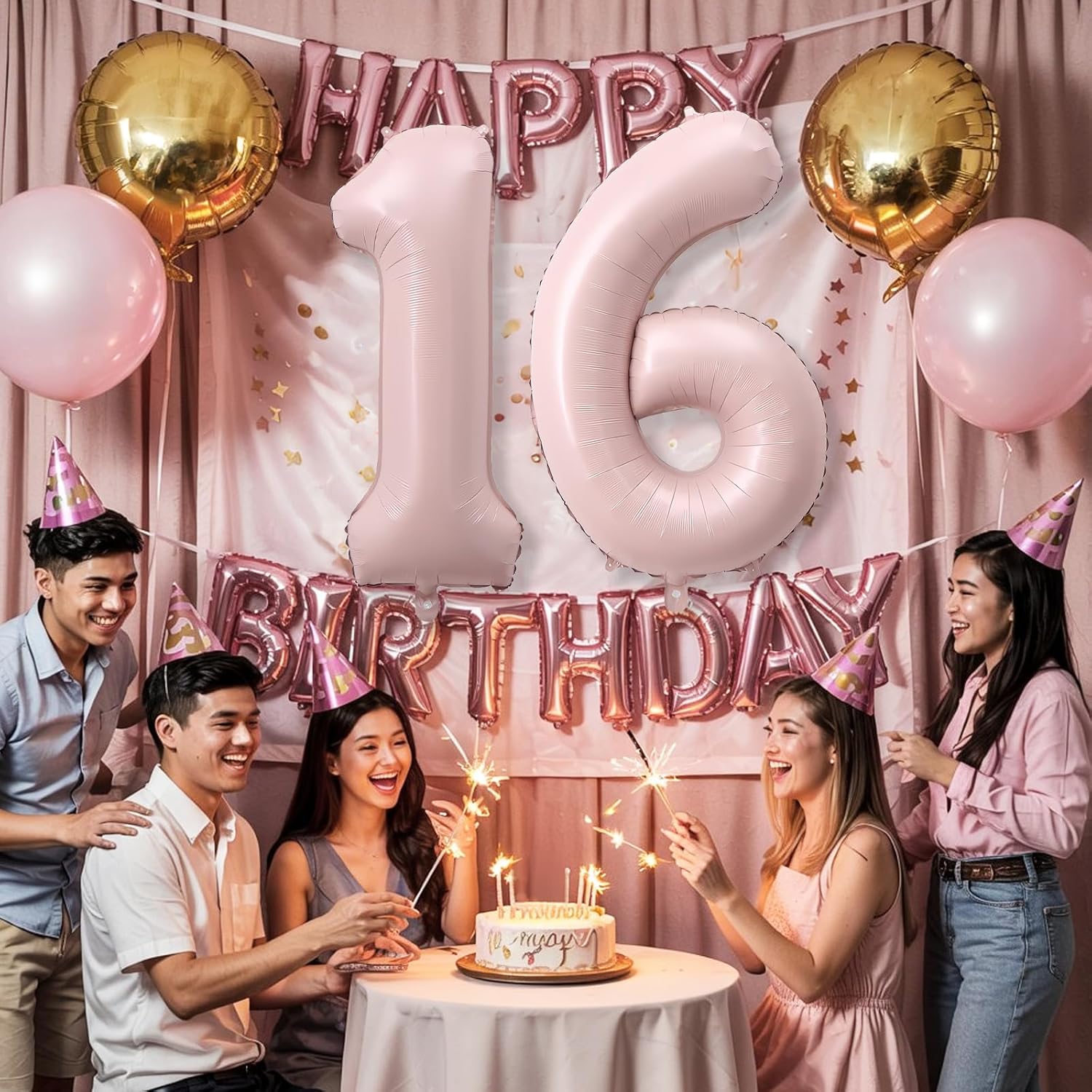 • Baby Pink Number 16 Balloon 40 Inch: Includes 1pc 16 balloon and a straw for easy inflation and deflation. This helium balloon is perfect for birthdays, anniversaries, or special occasions like a 16th celebration.