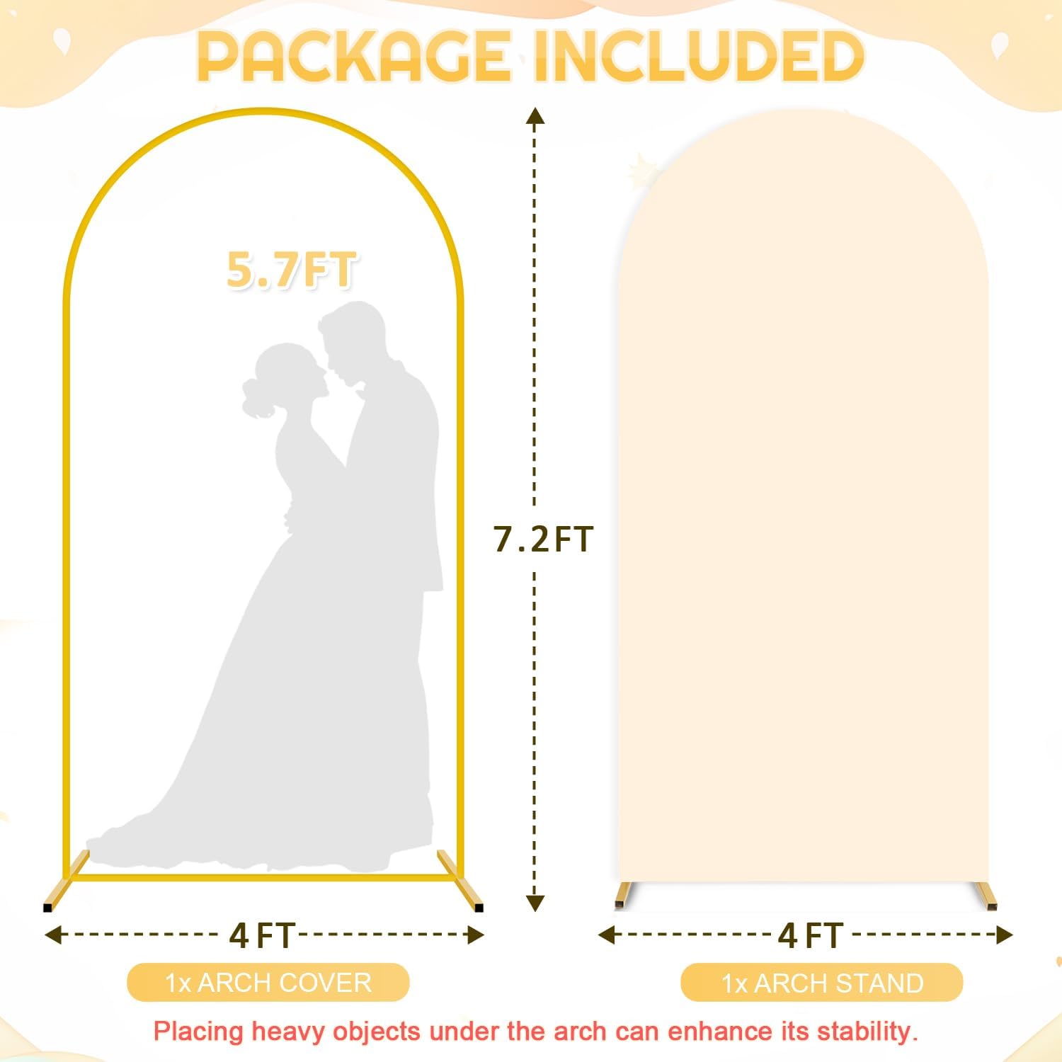 • 🥂【Package Included - Arch Backdrop Stand】You will receive 7.2FT gold photo arch backdrop stand and the same size 7.2FT beige backdrop arch cover. Let's create unforgettable moments with our backdrop arch stand!