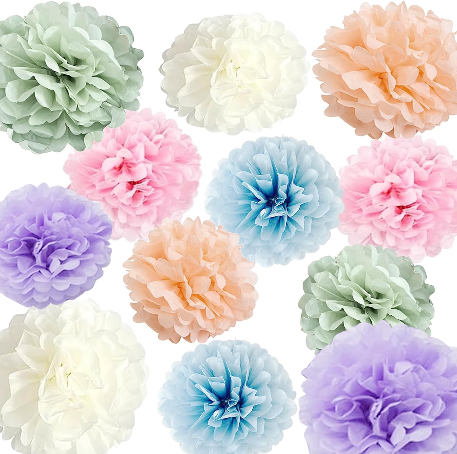 Pastel Rainbow Party Decorations in Colorful Tissue Paper Pom Poms Blush Pink Purple Peach Mint Light Blue Baby Bridal Shower Decorations (Macaron)