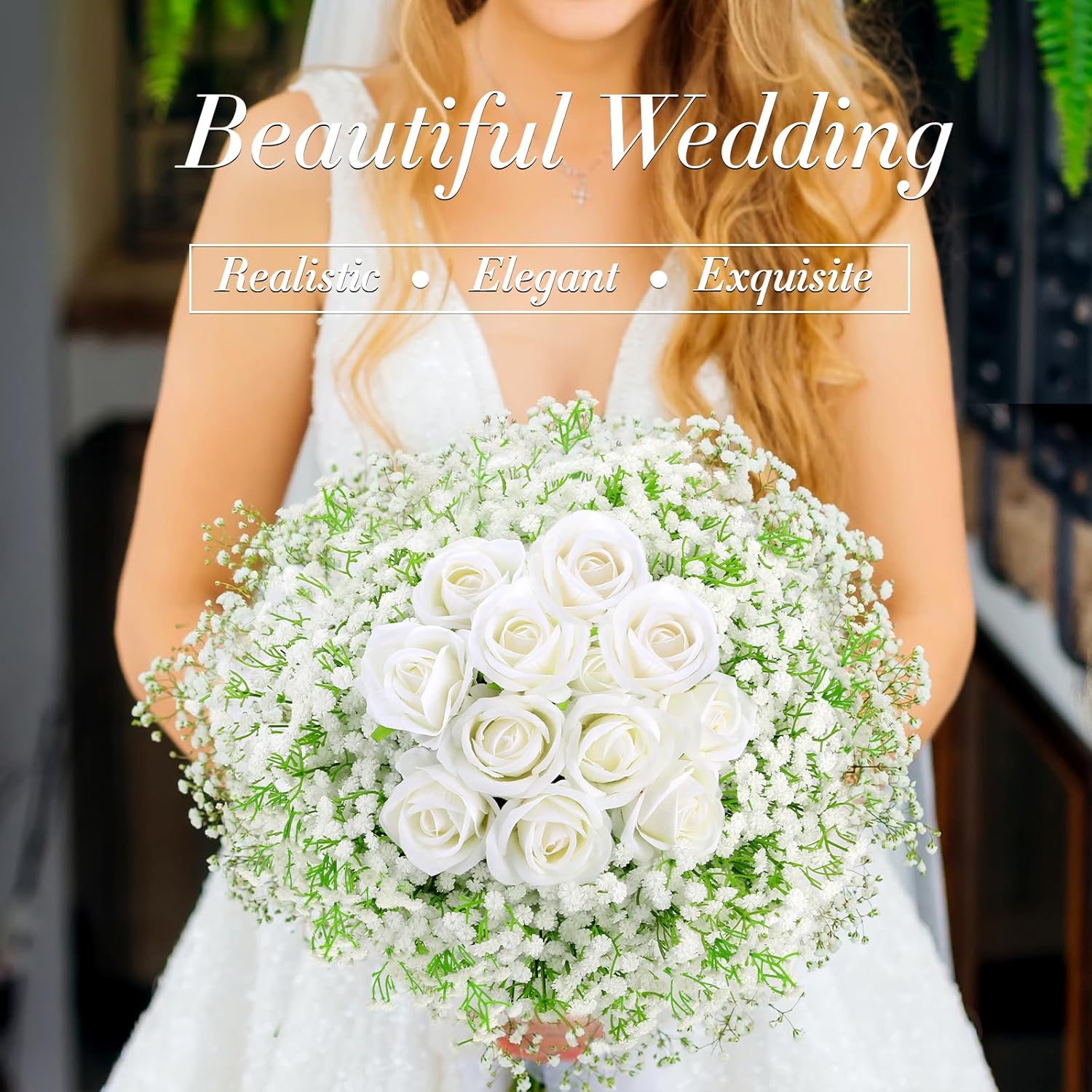 Babys Breath Artificial Flowers, Real Touch Babys Breath Flowers Artificial Bulk for Wedding Decor, White Fake Flowers for Party Home Garden Decor (48, White)