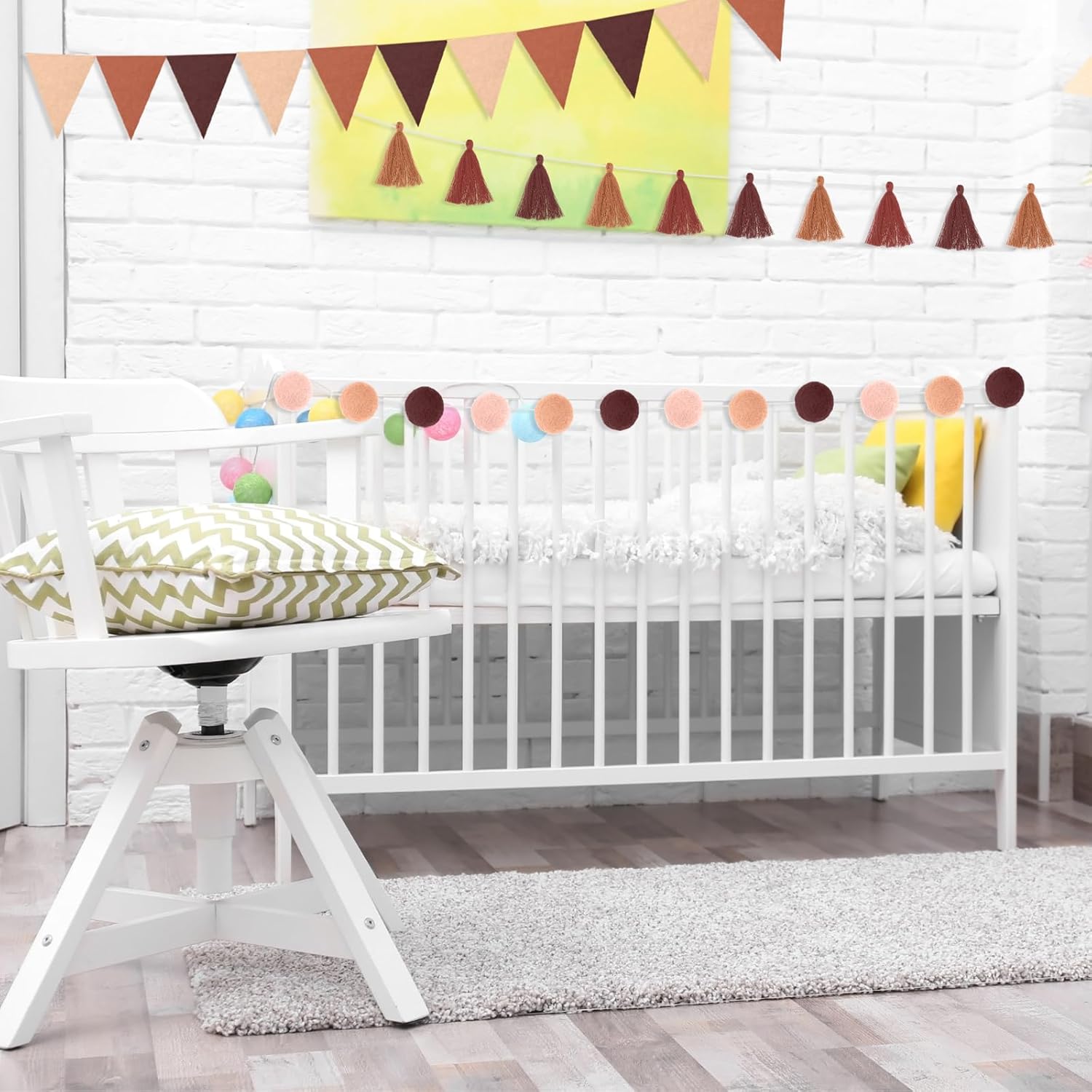 • Nice decoration set: the pom pom garland looks elegant and cute when hung on the wall or as backdrop decorations, easy to hang on the ceilings, walls as party or home decoration; Each garland consists of 10 pieces of tassels and each tassel contains multiple colors, full of warm and sweet feelings; The pennant banner cutting is neat, will not easily fall off or break, durable and reusable