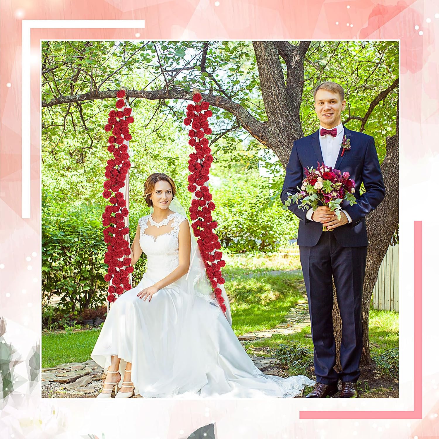 • The Package Includes: you will receive 4 artificial red rose vines; Each rose garland is 6 feet long and diameter of each flower measures about 3.7 inches; Each rose wreath contains 62 red roses; If you feel that the length is not enough, you can connect multiple vines together for use