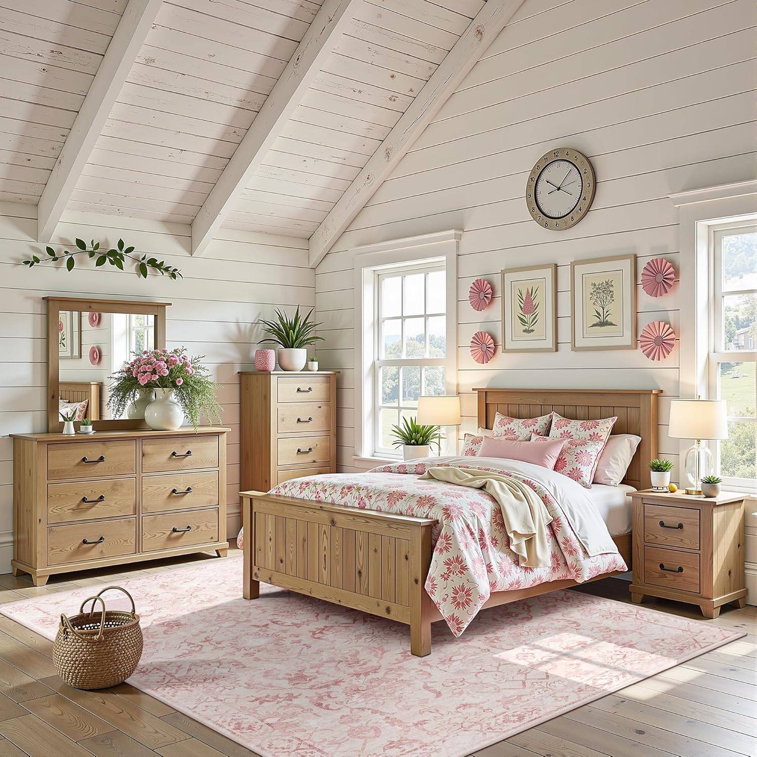 Pink Area Rugs 5x7 Rugs for Living Room, Machine Washable Rugs for Bedroom, Distressed Vintage Living Room Rug, Rug Non Slip Carpet Cream Green Area Rug for Dining Room Office