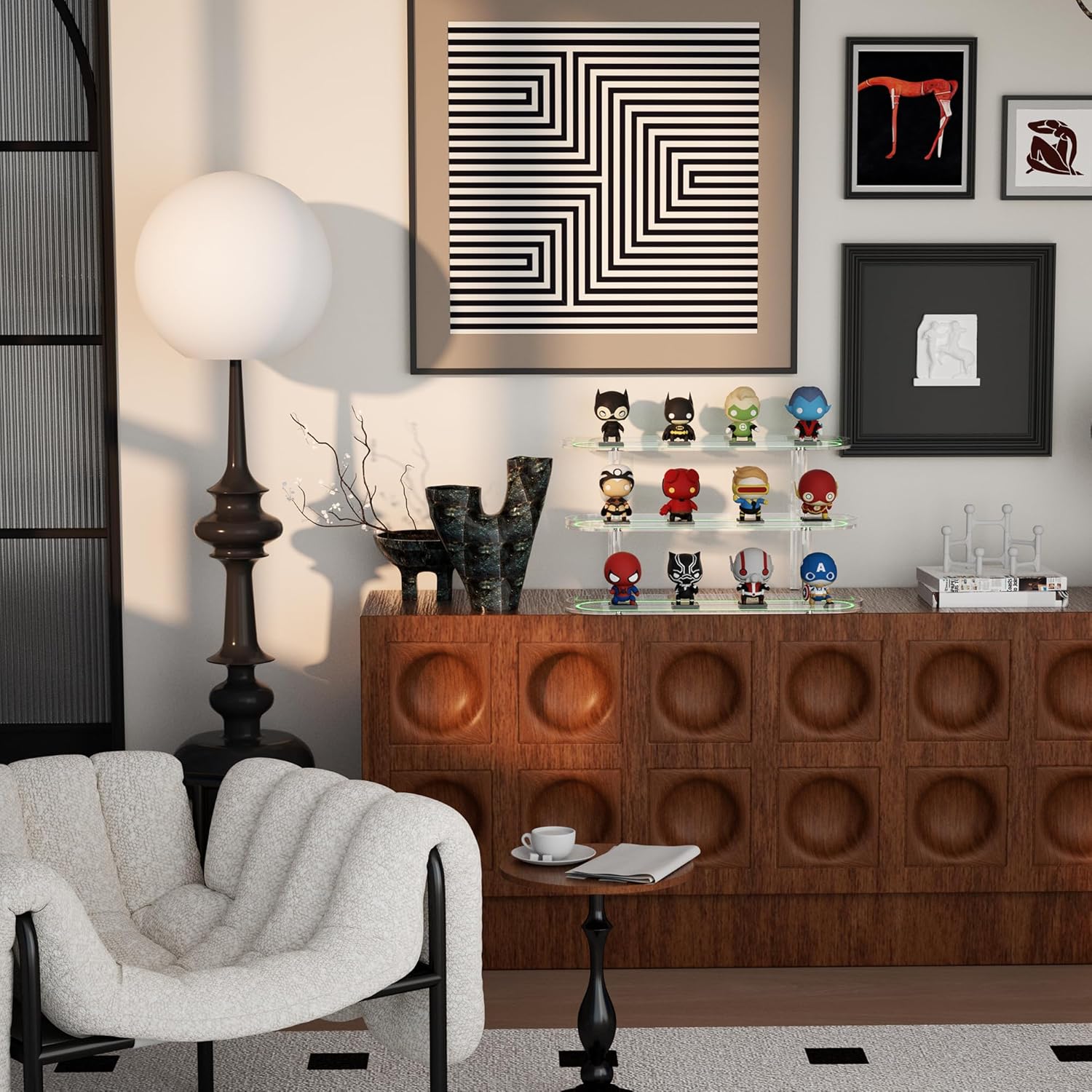 • SAVES SPACE & NEATLY ARRANGED: You can find your items quickly and easily, no more digging through messy drawers. Acrylic riser display stands are easy to place, perfect for your dresser, table organization or 𝐚𝐦𝐢𝐢𝐛𝐨 Funko-POP display case and they complement any room color or theme