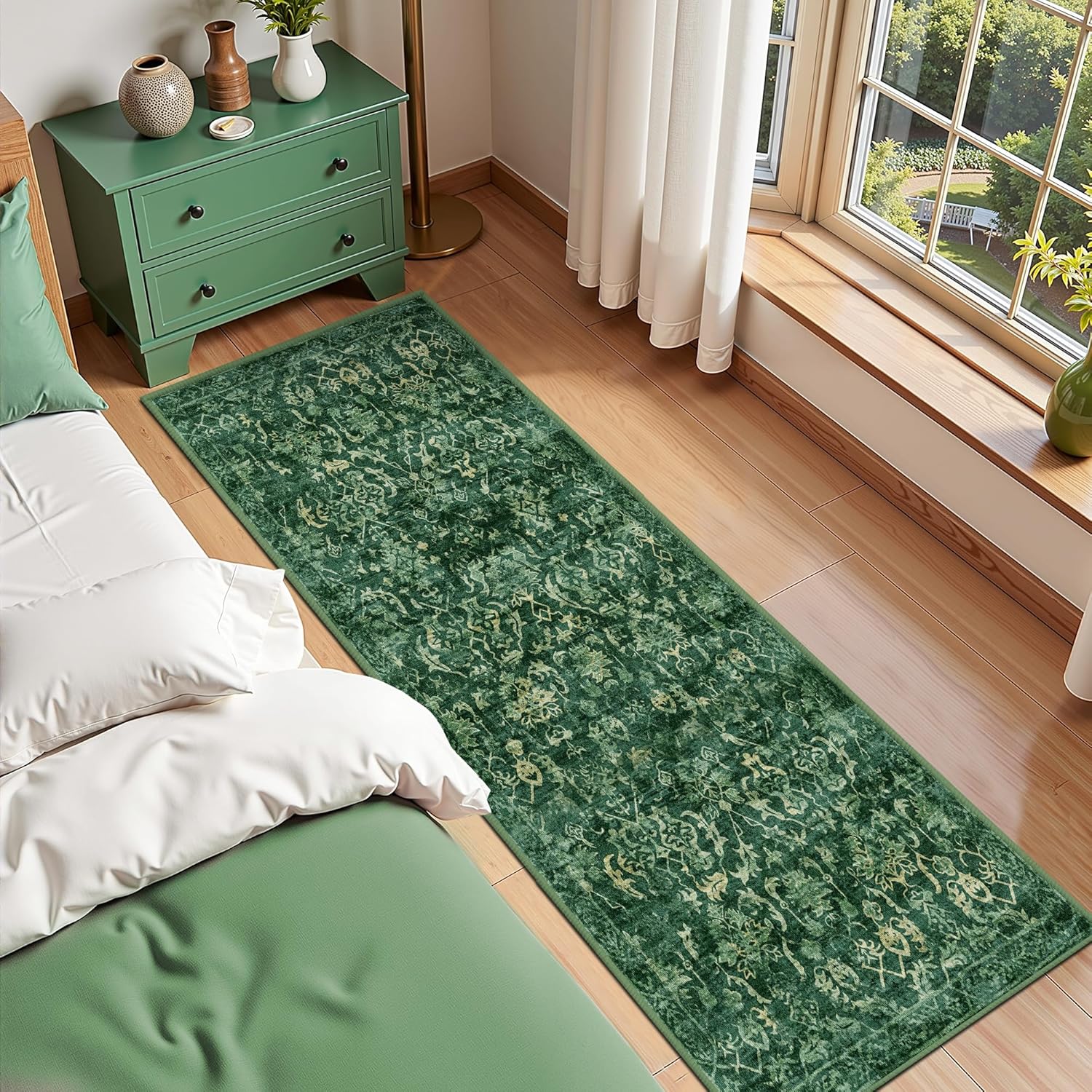 • Deerly Vintage 3x7 Runner Rug: These Hallway runner rug feature trendy faded style and unique neutral distressed floral pattern, vintage tones combines the dark green and ivory color, creating a comfortable and warm family environment. 3x7 rug runner is suitable for indoor entrance, bedroom, kitchen, bathroom, etc.