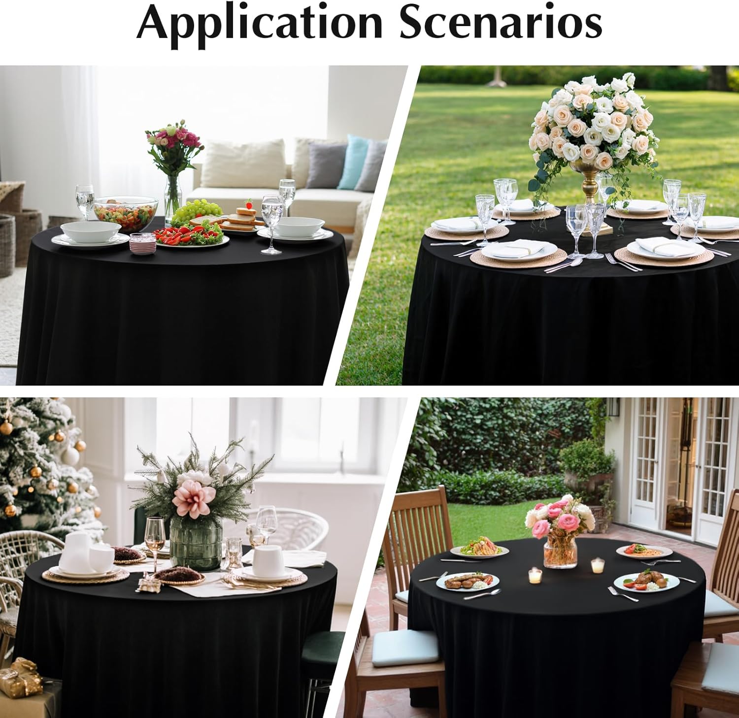 • Tablecloth Material: These solid black tablecloths are made of polyester, which makes them soft, sturdy and stain resistant. Our tablecloths, our heavy duty round tablecloths are washable, scratch-resistant, not easily broken, and long-lasting