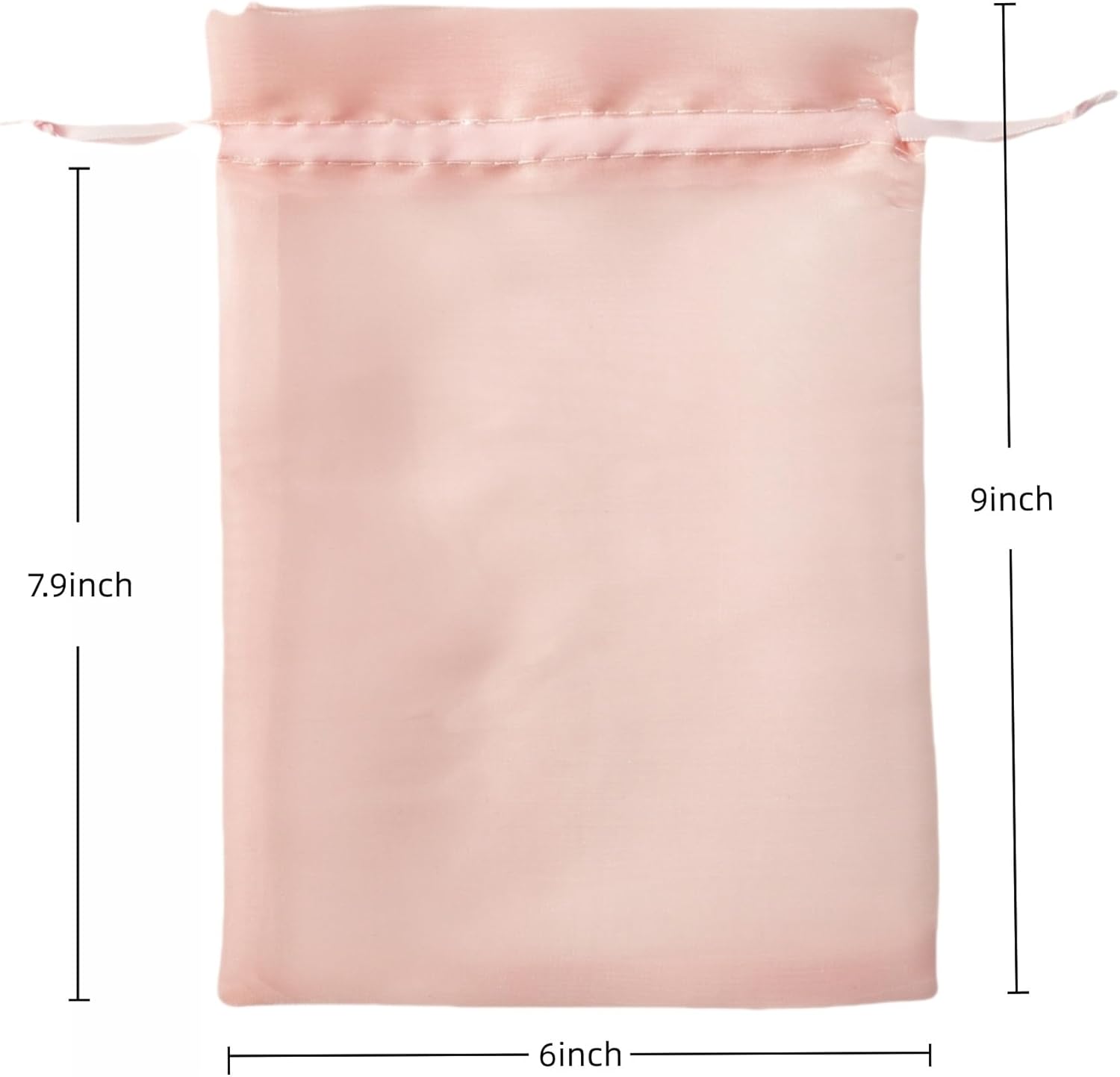 QIANF 20 Pcs Pink Small Organza Bags 6X9 inch for Wedding Favors with Drawstring, Mini Mesh Gift Bags Jewelry Pouch for Candy Bridal Shower Party Favor Baby Shower Christmas