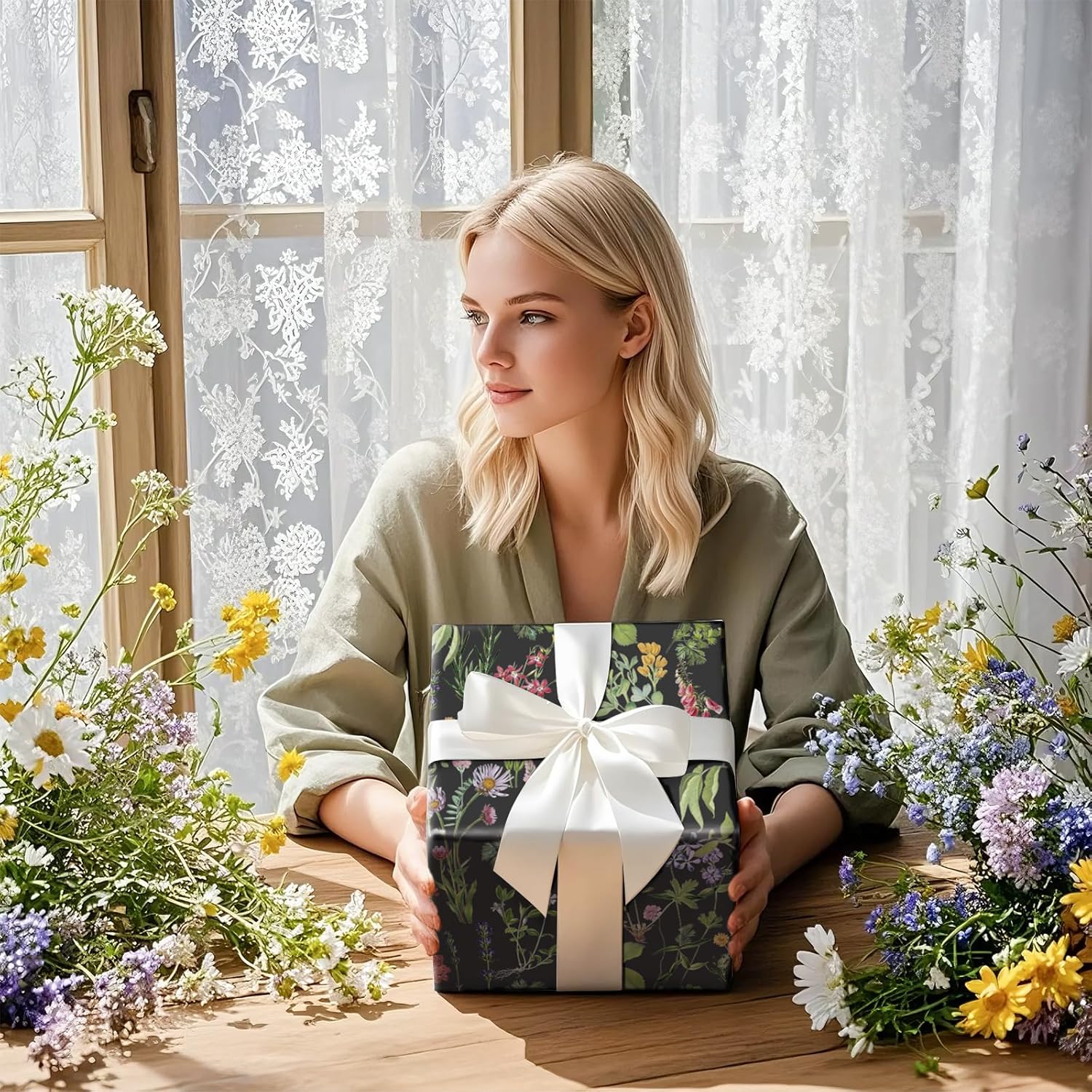 • Timeless Wildflower Design: Adorn your gifts with a colorful wild flower print on black background that exudes charm and elegance. The flower wrapping paper make it ideal for creating a wonderful gift presentation that leaves a lasting impression