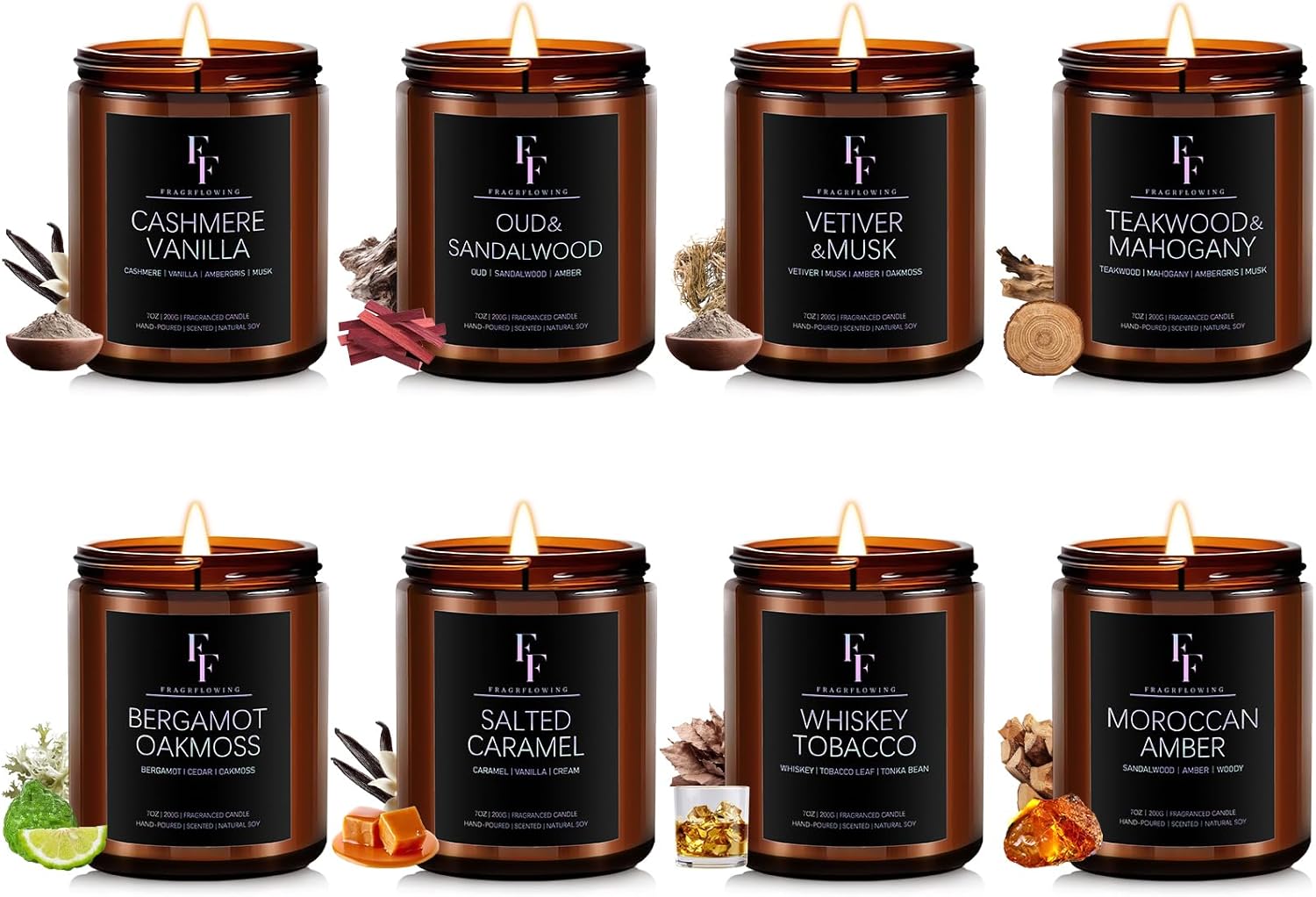 Scented Candles Set, Soy Wax Candles 8 Pack 56 Oz Aromatherapy Candles Gift Set for Women Men (Vanilla/Sandalwood/Amber/Mahogany/Vetiver/Bergamot/Caramel/Whiskey)