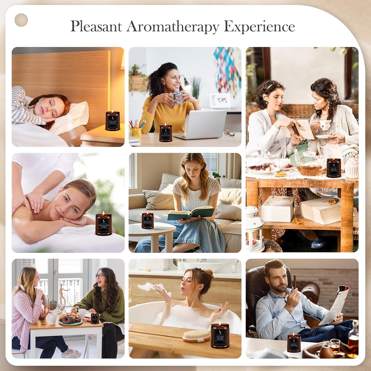 • Perfect for Any Setting: Whether it's a cozy night in, a festive gathering, or a romantic dinner, these scented candles elevate the atmosphere. With captivating scents like Vetiver Musk and Bergamot Oakmoss, providing a sensual and aromatic experience that leaves a lasting impression on you and your guests