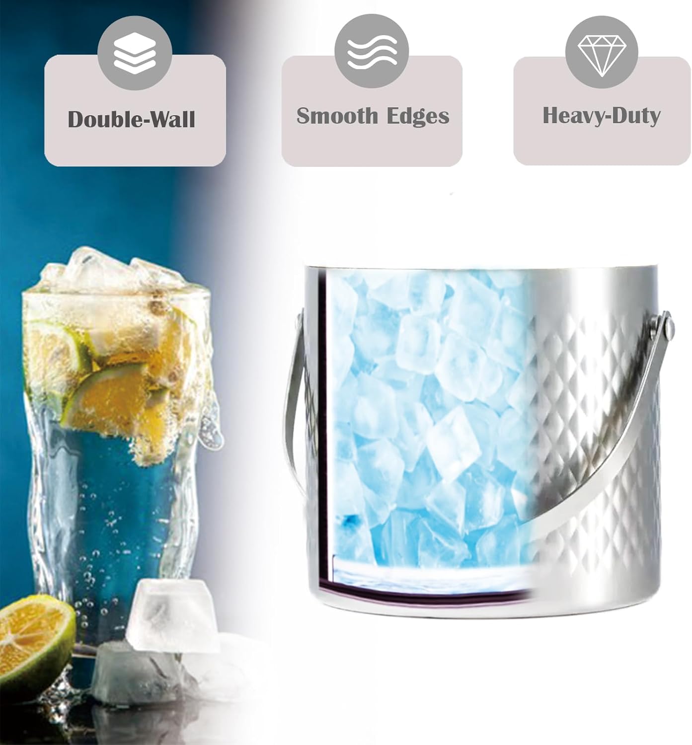 • DOUBLE WALL INSULATION: Keep your drinks refreshingly chilled for longer! Our Hammered Insulated Ice Bucket features advanced insulation technology that prevents ice from melting quickly, making it the perfect addition to your cocktail bar parties.