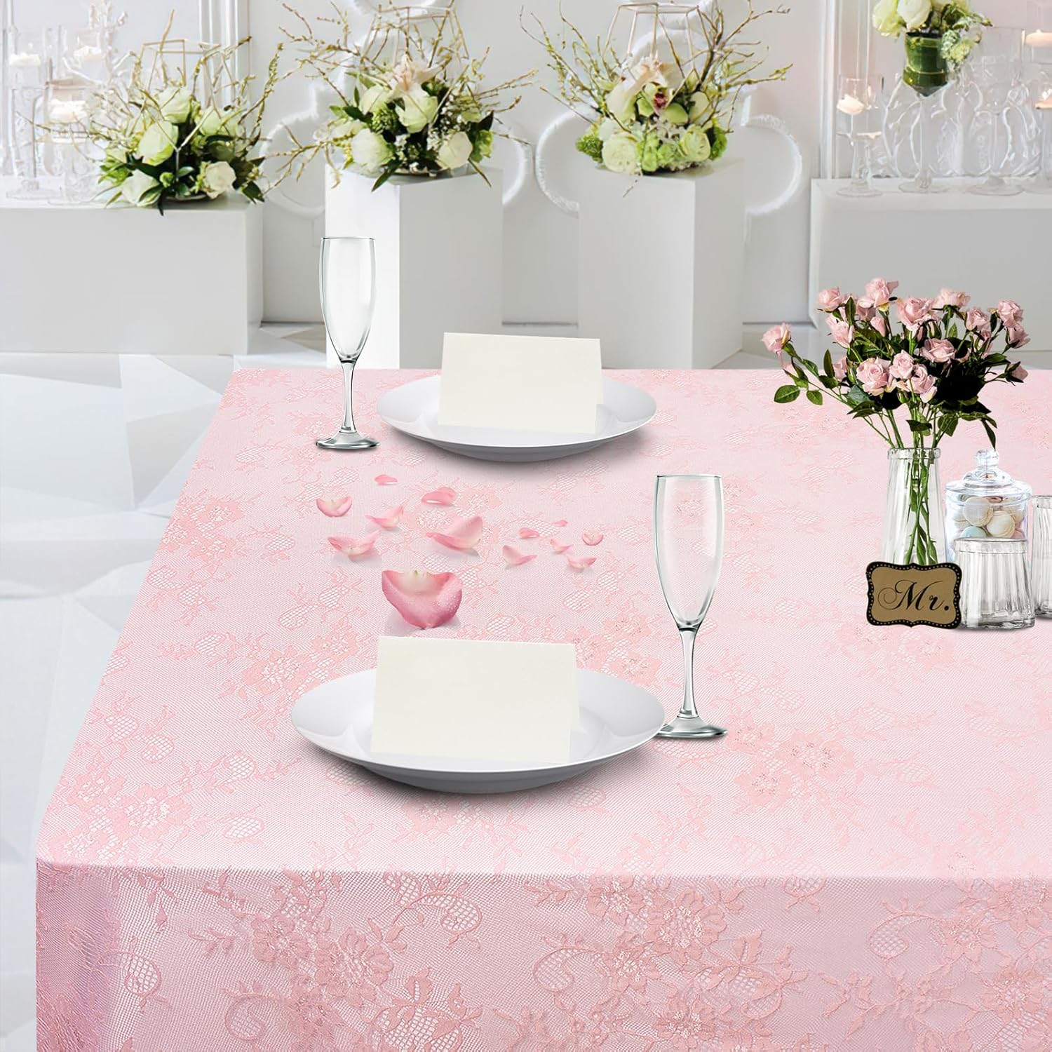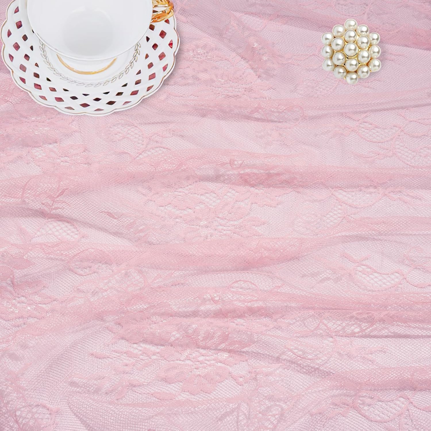 LuoluoHouse Pink Lace Tablecloth Table Fabric 6pcs 60x120 Inch for Vintage Boho Wedding Baby Shower Party Decoration Rectangle Overlay Long Vintage Embroidered Reception Table Cloth Decor