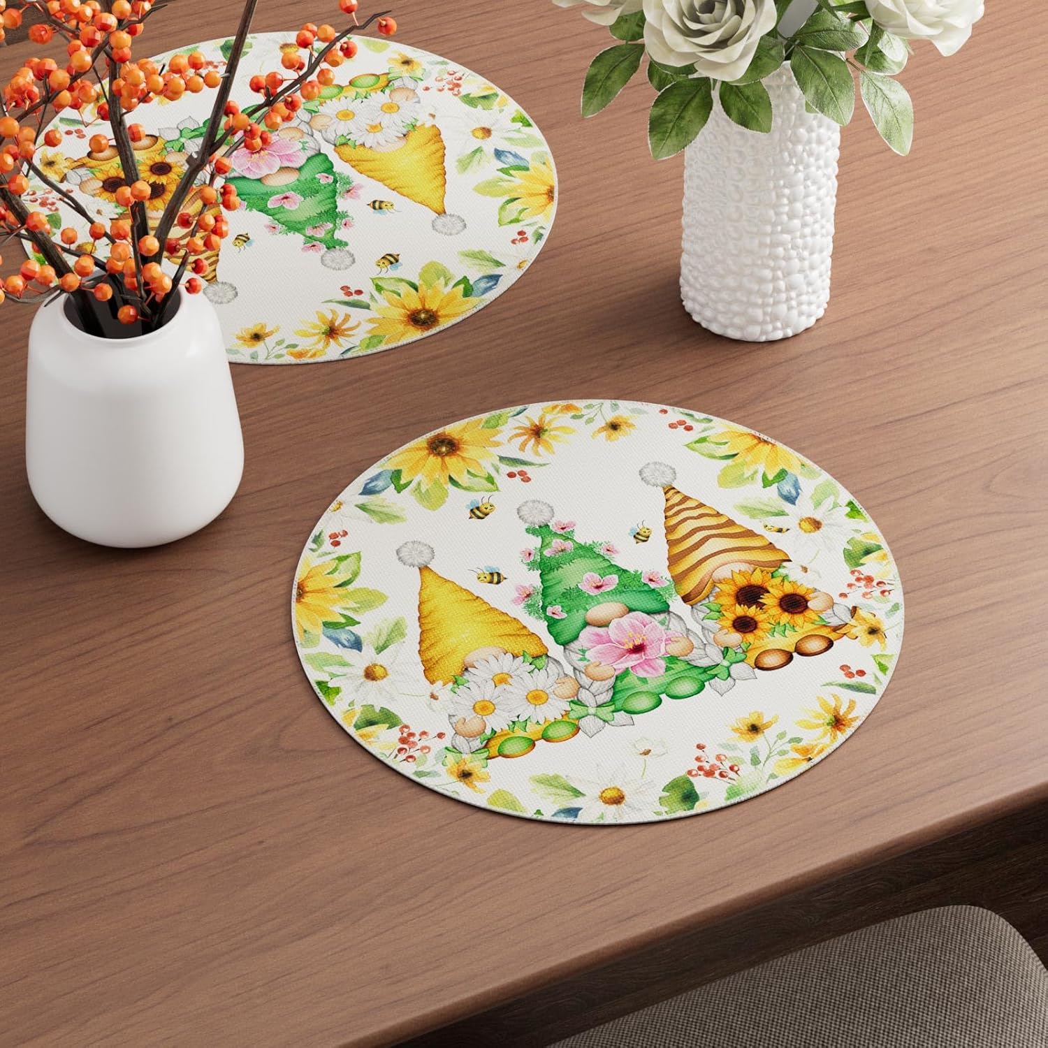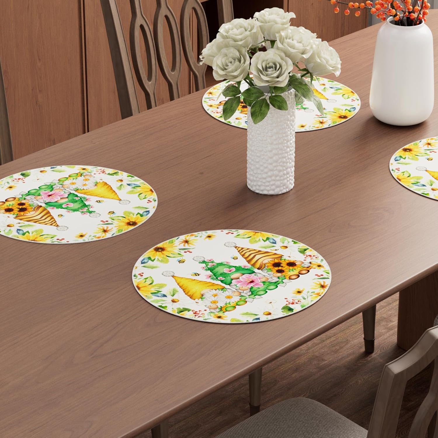 XCHI Daisies Flowers Gnomes Spring Round Placemats Set of 4 Table Mats Summer Seasonal Table Decorations 14x14 Inch