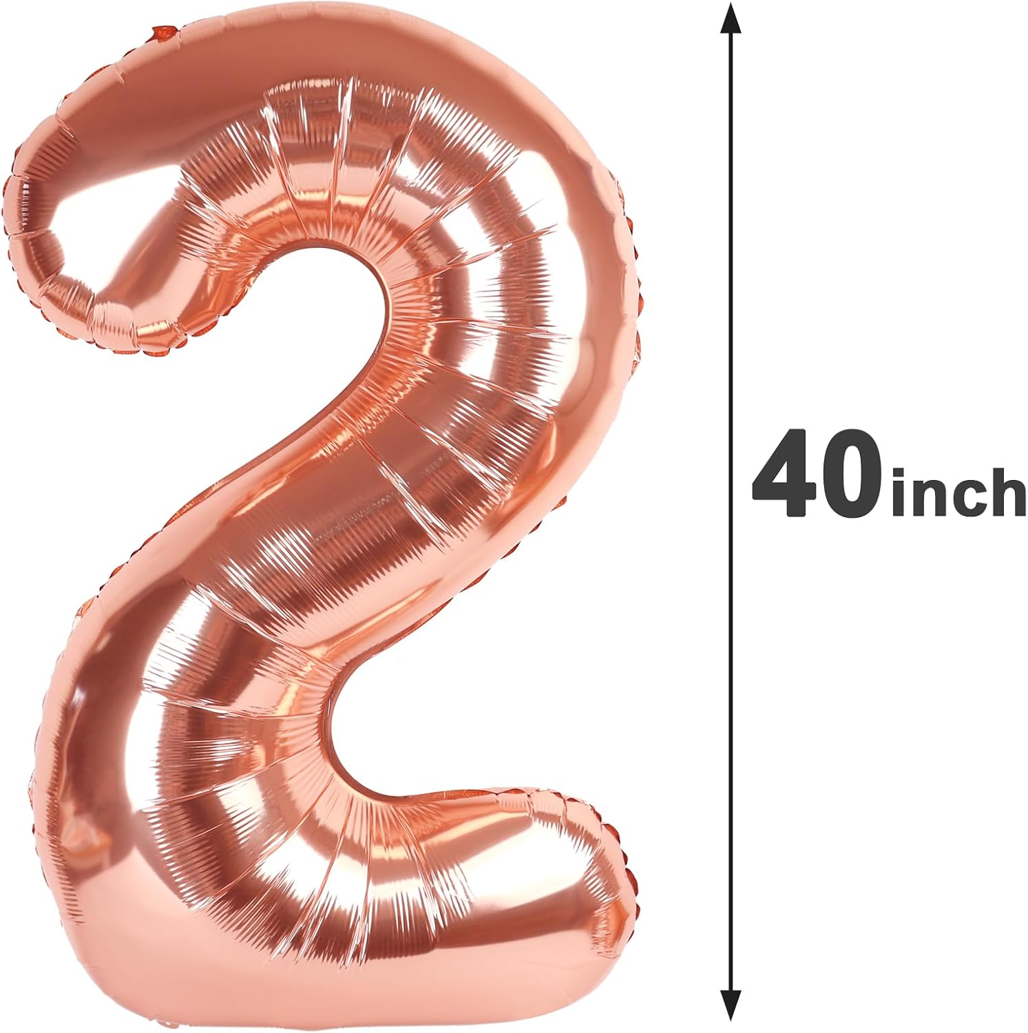 • 1.Make Party Charming with Rose Gold Number Balloon:You will receive an uninflated 40 inch number 2 balloon.Balloons are always the best statement of romance and surprise. Big balloons symbolize vitality exoticism,adding glamour to 2nd birthday parties. Bright metallic rose gold and huge size make 2 balloon number a highlight of special parties.Choose one or more rose gold numbers from 0-9 balloon,and use 2 2nd 12 22 32 42 52 62 72 82 92 balloons bulk to create a lively charming birthday party!