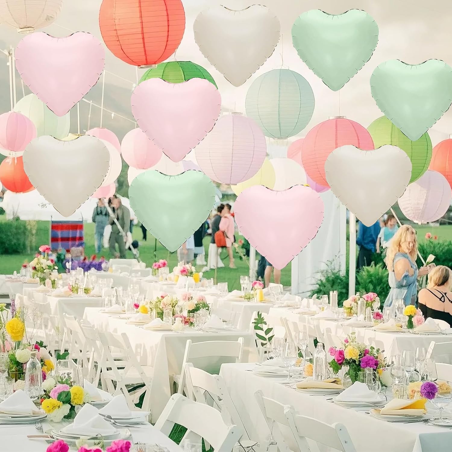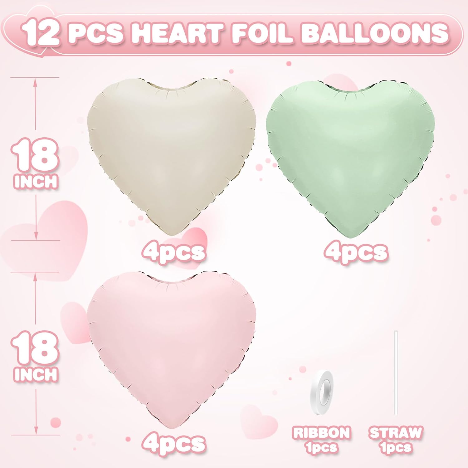 • 12PCS HEART BALLOONS:Package include 4pcs cream white heart foil balloons,4pcs baby pink heart foil balloons,4pcs olive green heart foil balloons,1pc straw.Large enough to help you better decorate your party.