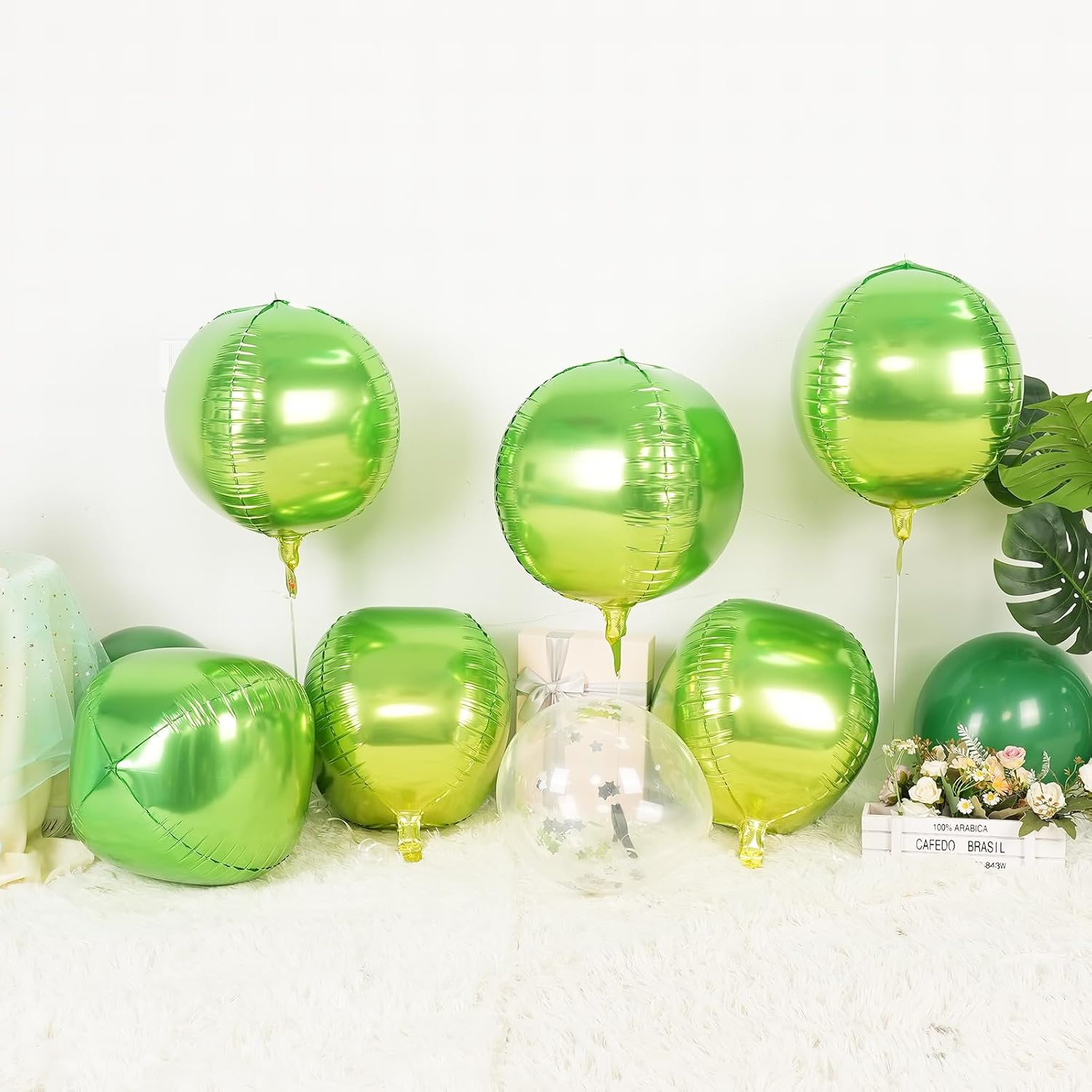 6Pcs Gradient Green Round Foil Balloons,Giant 4D Round Ball Balloon,22 Inch Green Balloons for Birthday Wedding Graduation Prom Party Decorations