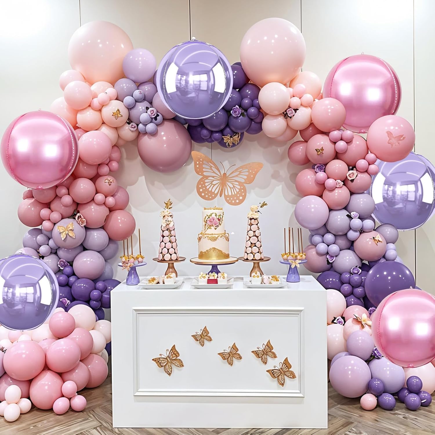 6Pcs Pink purple Round Foil Balloons,Giant 4D Round Ball Balloon,22 Inch Metallic Pink purple Balloons for Birthday Wedding Prom Party Decorations