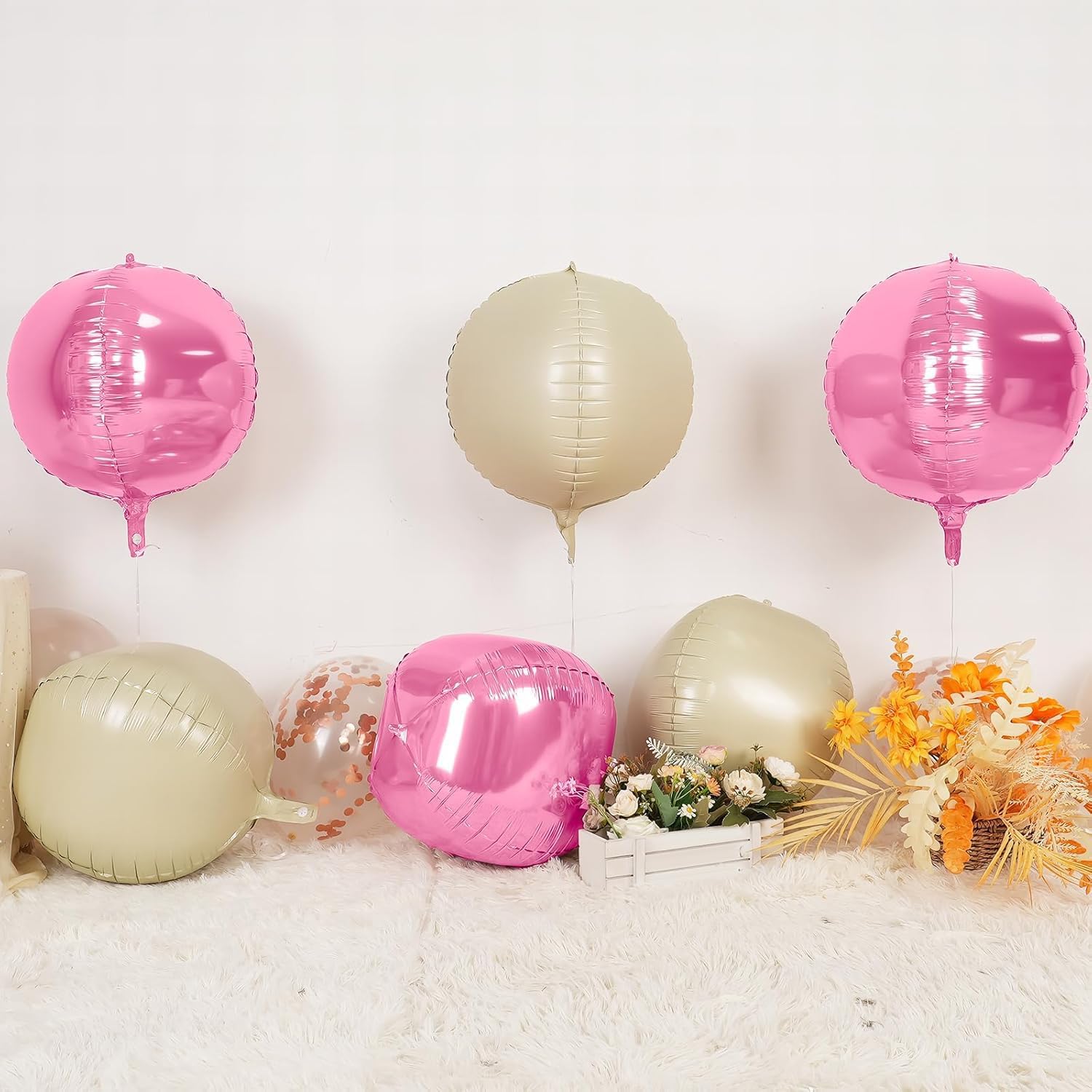 6Pcs Pink Cream White Round Foil Balloons,Giant 4D Round Ball Balloon,22 Inch Metallic Pink Cream White Balloons for Birthday Wedding Baby Shower Party Decorations