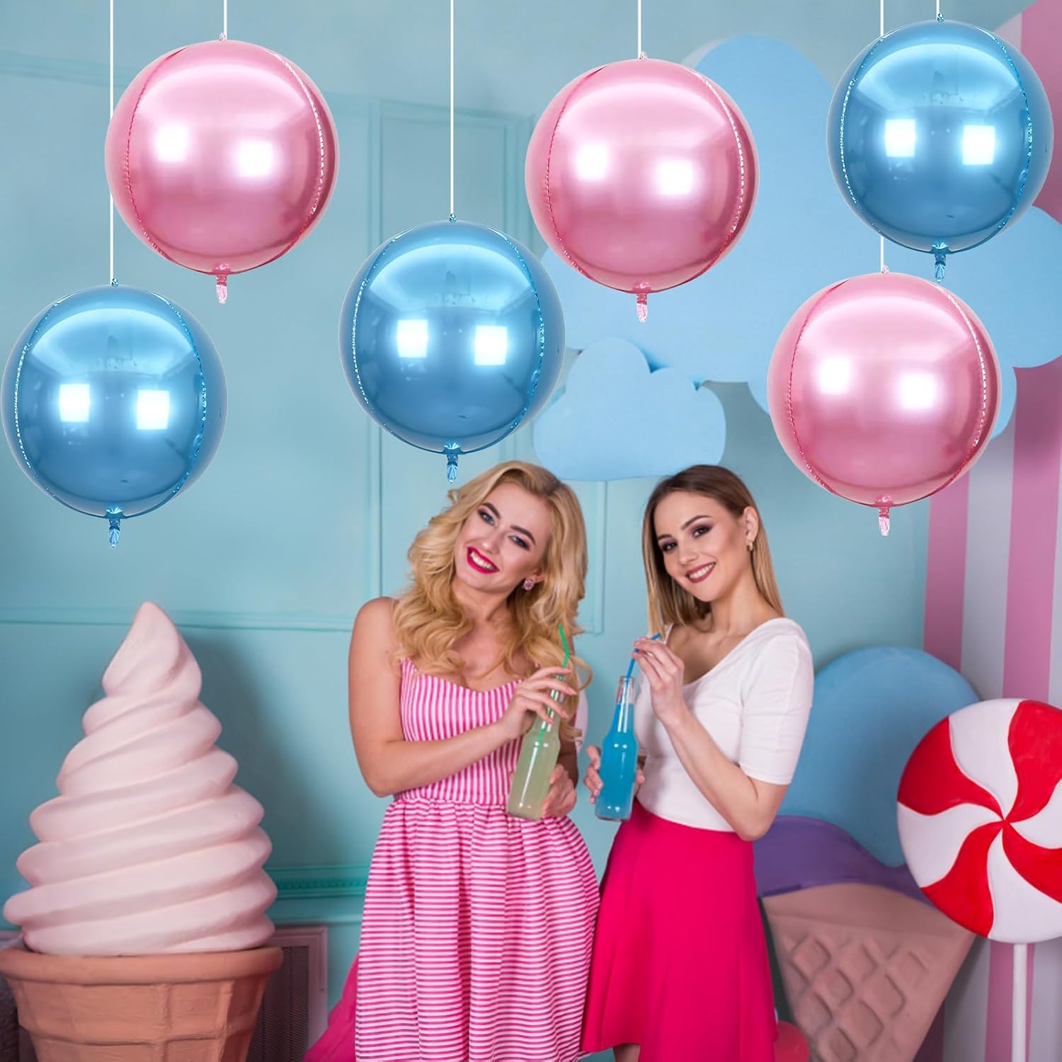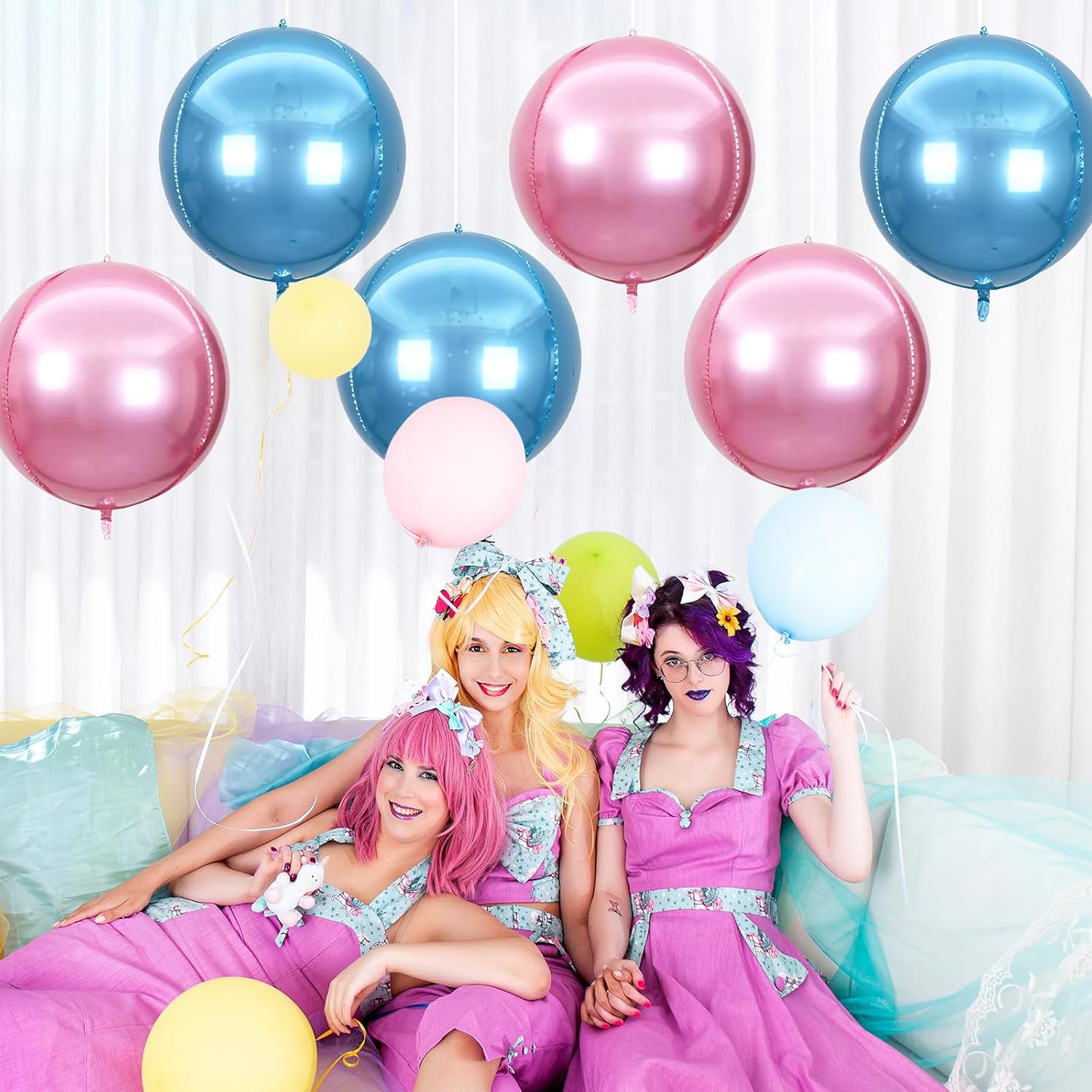 6Pcs blue Pink Round Foil Balloons,Giant 4D Round Ball Balloon,22 Inch Metallic blue Pink Balloons for Birthday Wedding Baby Shower Party Decorations