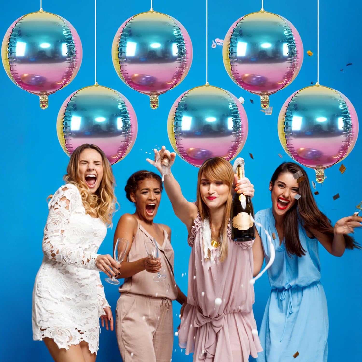 6Pcs Gradient Rainbow Round Foil Balloons,Giant 4D Round Ball Balloon 22 Inch for Wedding Birthday Engagement Gradient Party