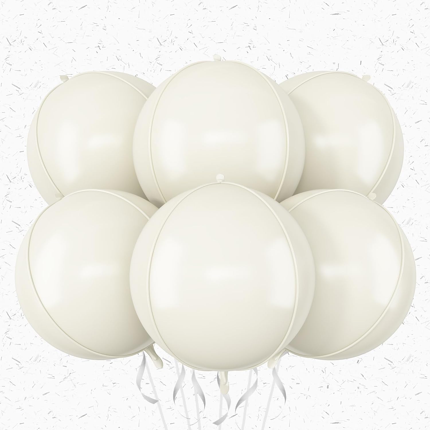 6Pcs Cream White Round Foil Balloons,Giant 4D Round Ball Balloon,22 Inch Balloons for Birthday Baby Shower Engagement Party Decorations