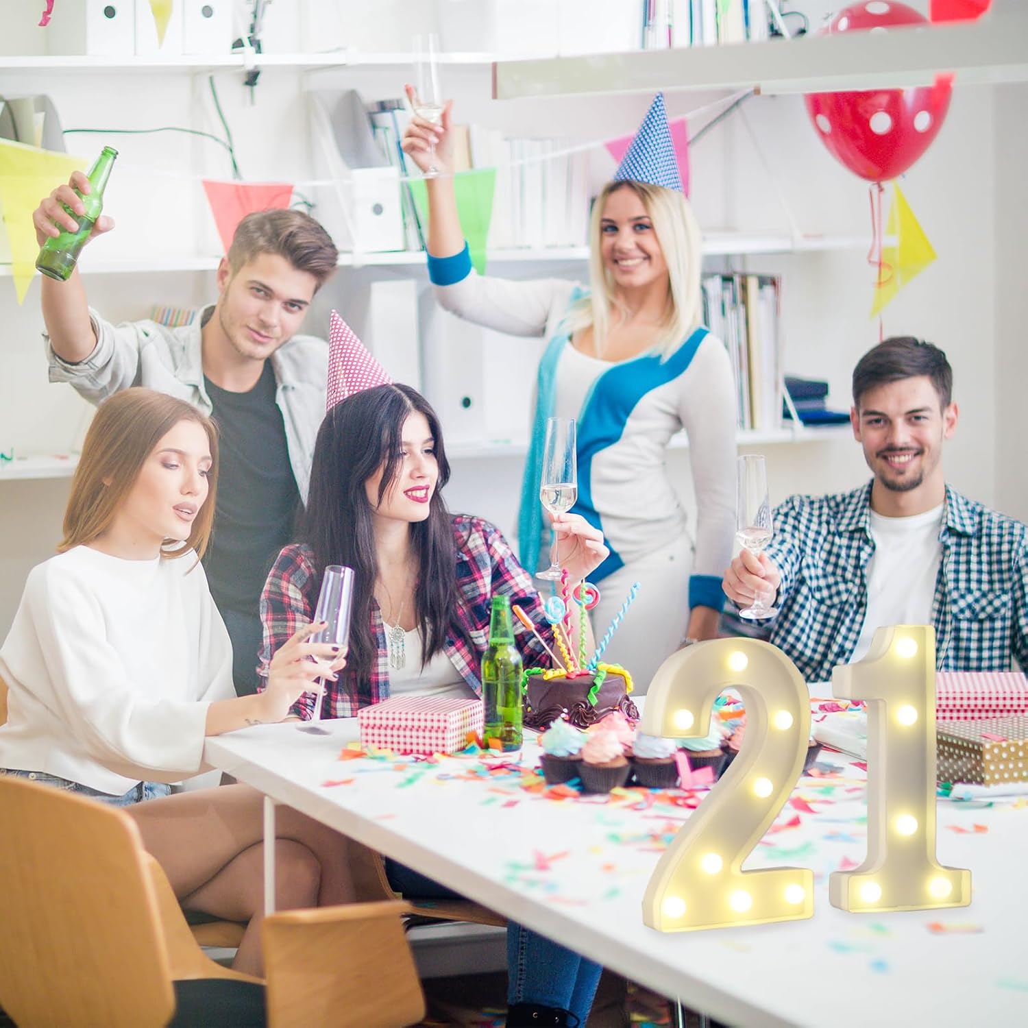 • 【Light Up Your Birthday】 Light up number lights are great birthday party supplies and decorations, perfect for all kinds of scenes and memorable moments. Light up your birthday party by spelling out “21” with our number lights, light up the wonderful moments, warm white lights create a cozy atmosphere, make your 21th birthday party more memorable and sparkling!