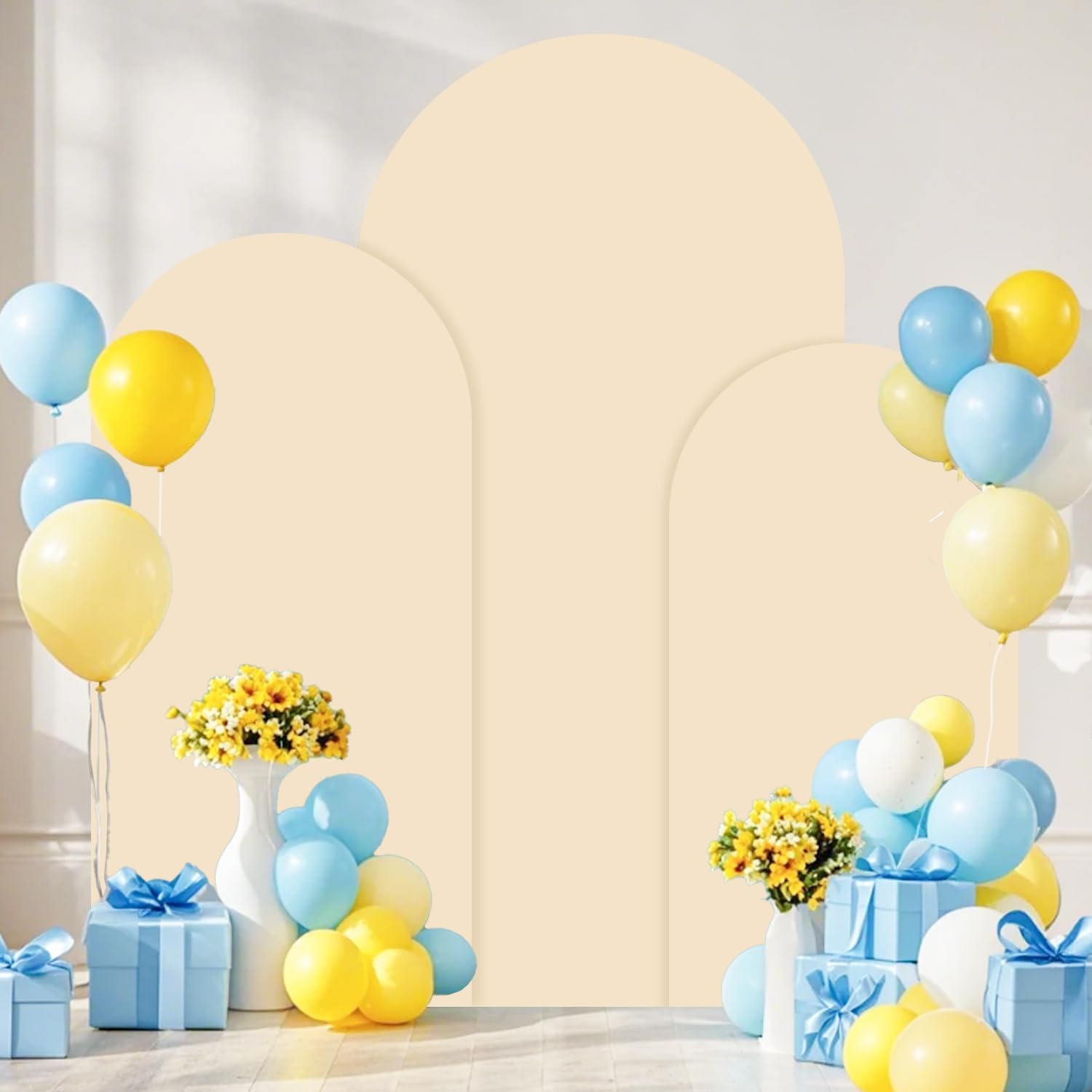 • 🧸【Size Information- Wedding Arch Stand and Cover Set】Arch stand and cover set includes 3 gold metal arch backdrop stands and 3 beige arch cover in sizes 7.2FT x 4FT(H x W), 6.6FT x 3.3FT(H x W) and 6FT x 2.6FT(H x W). The backdrop arch stand with cover is certain to meet your decoration needs and add a charming look to your celebrations.