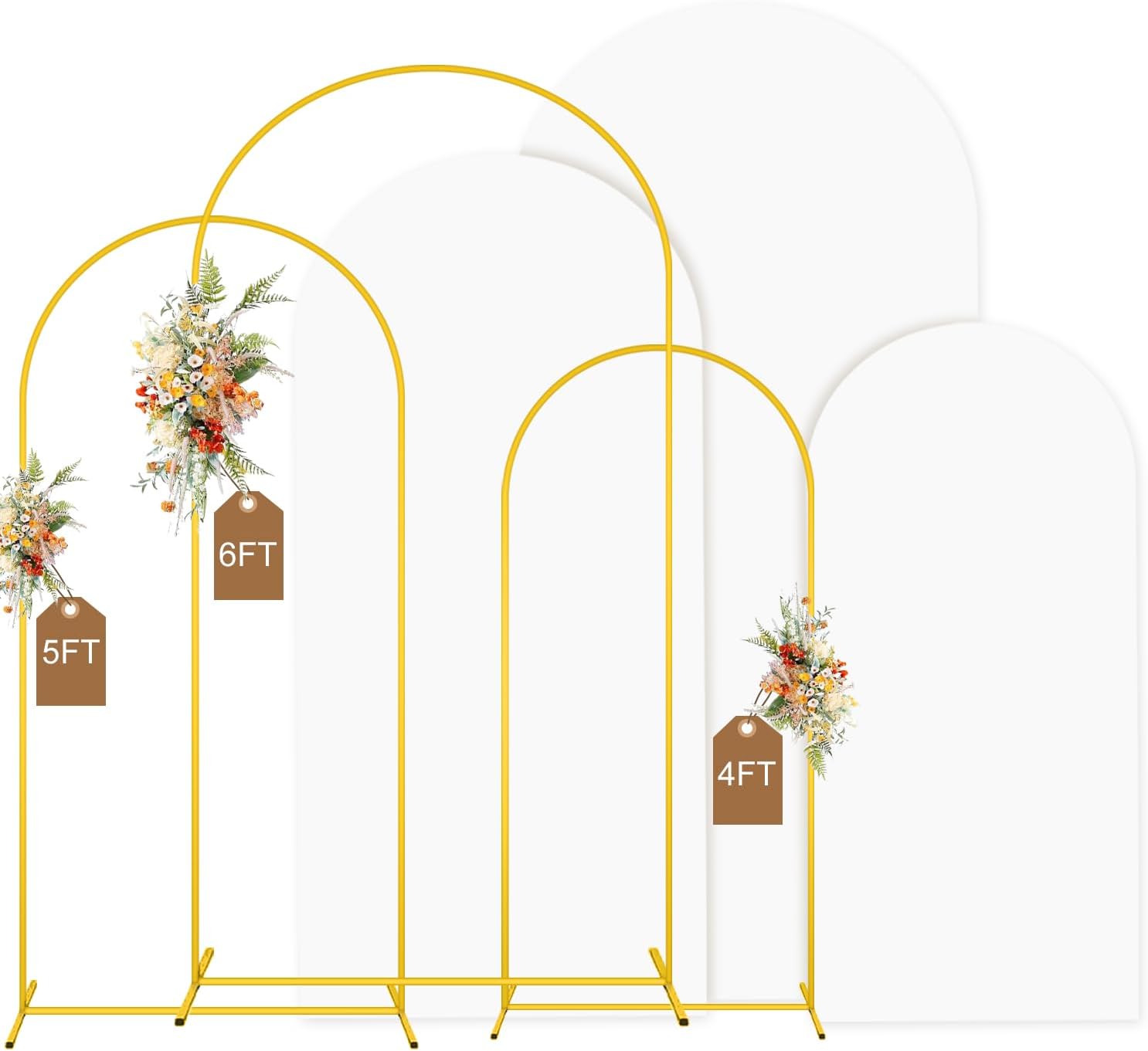 MODFUNS Metal Arch Backdrop Stand and Cover Set 4&5&6ft Gold Arch Backdrop Stand and White Arches Cover Balloon Arched Backdrop Frame with Covers for Wedding Ceremony Birthday Party Decor