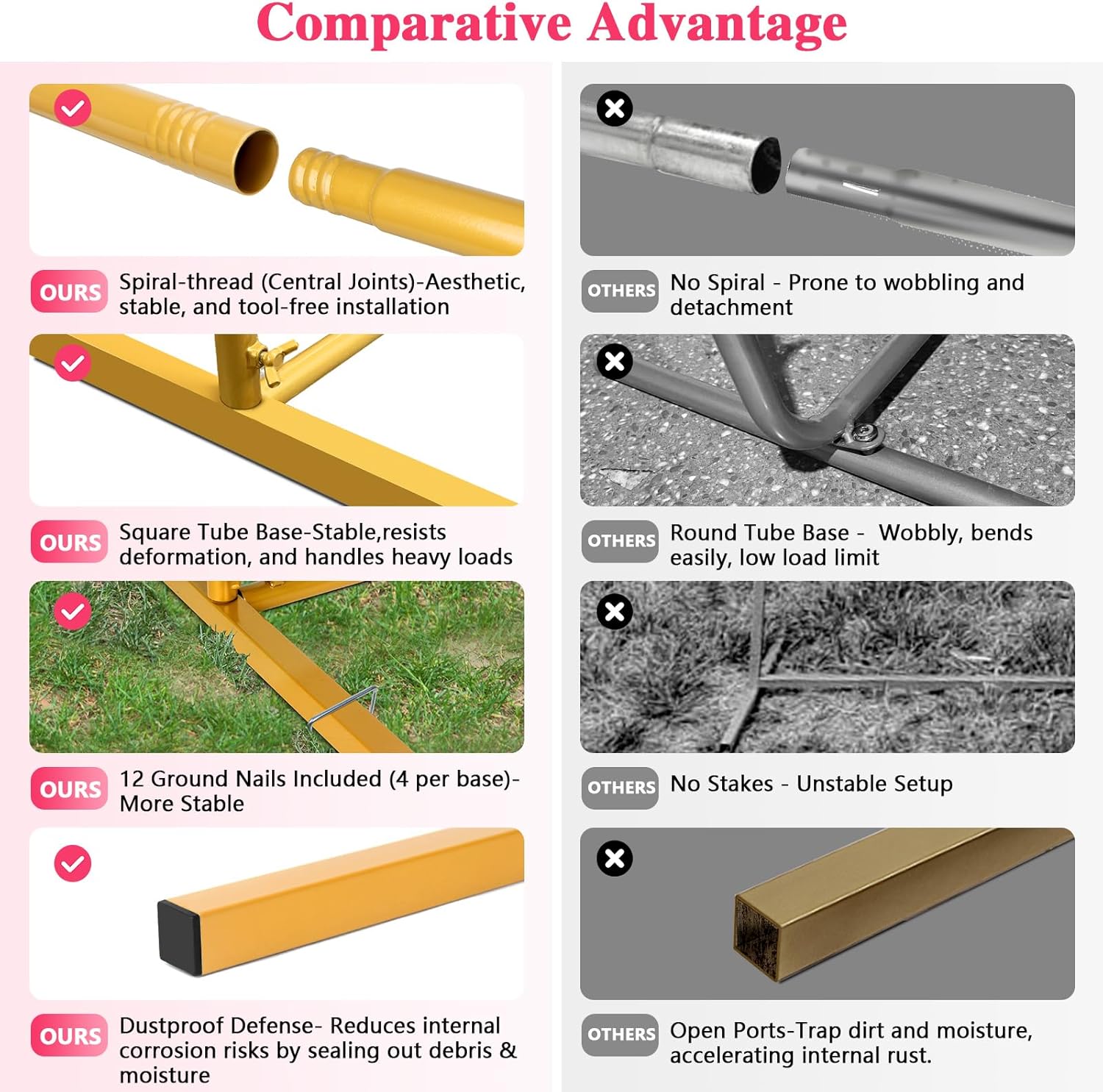 • Sturdy & Aesthetic Connections:YAYOYA wedding arch stand features spiral-threaded joints instead of traditional screws at central structural connection points. It not only creates an aesthetic but also ensures rock-solid stability