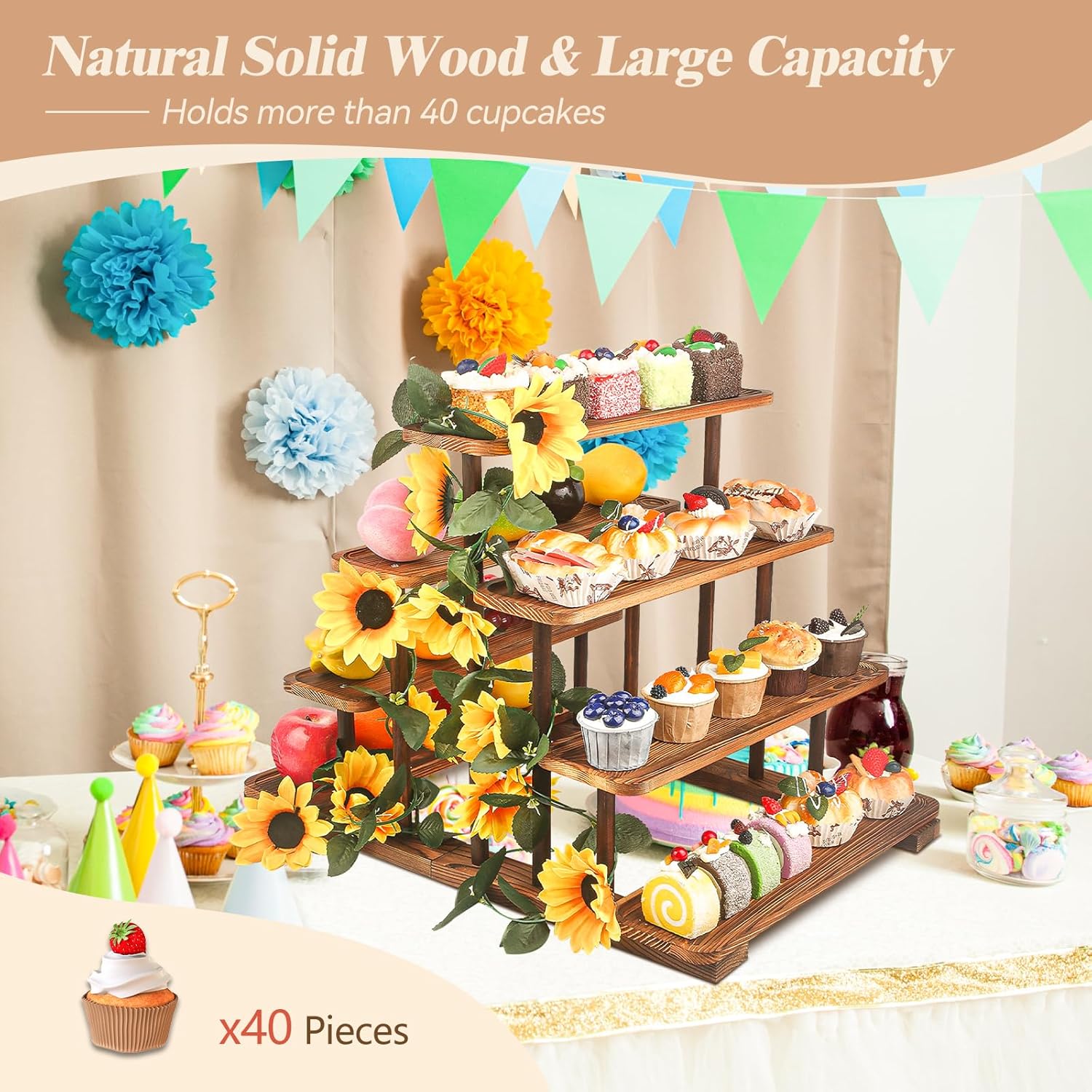 • Durable & Easy-Care Cupcake Stands: Crafted from solid wood, this sturdy 7-tier cupcake stand doubles as elegant food stands for display party. For lasting use: hand wash with mild soap, Avoid soaking—rinse with water and air dry(no dishwasher/microwave). Pro tip: Use food - safe paper to line when serving food