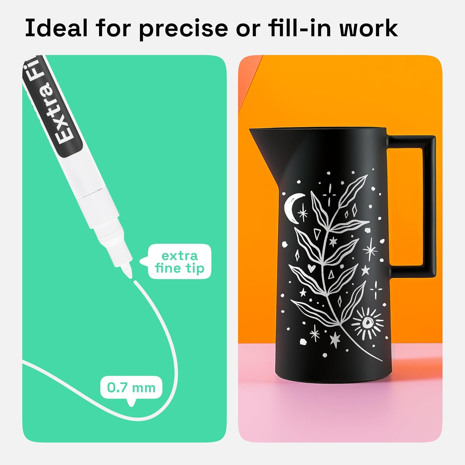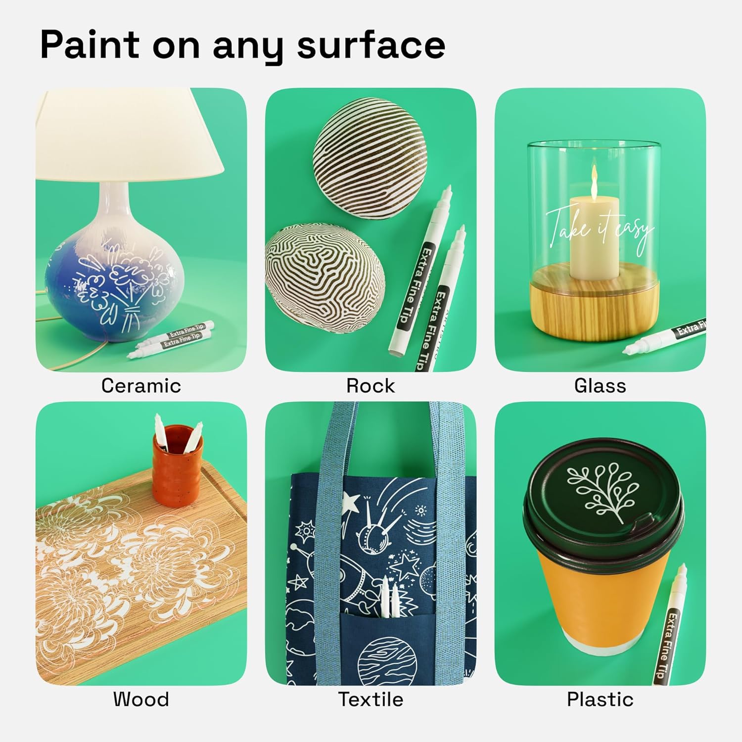 ARTISTRO 2 White Permanent Marker - Waterproof Markers for Tire, Fabric, Rocks, Glass, Ceramic, Wood, Paper - Oil Based Paint Pens - Extra-Fine Tip 0.7mm