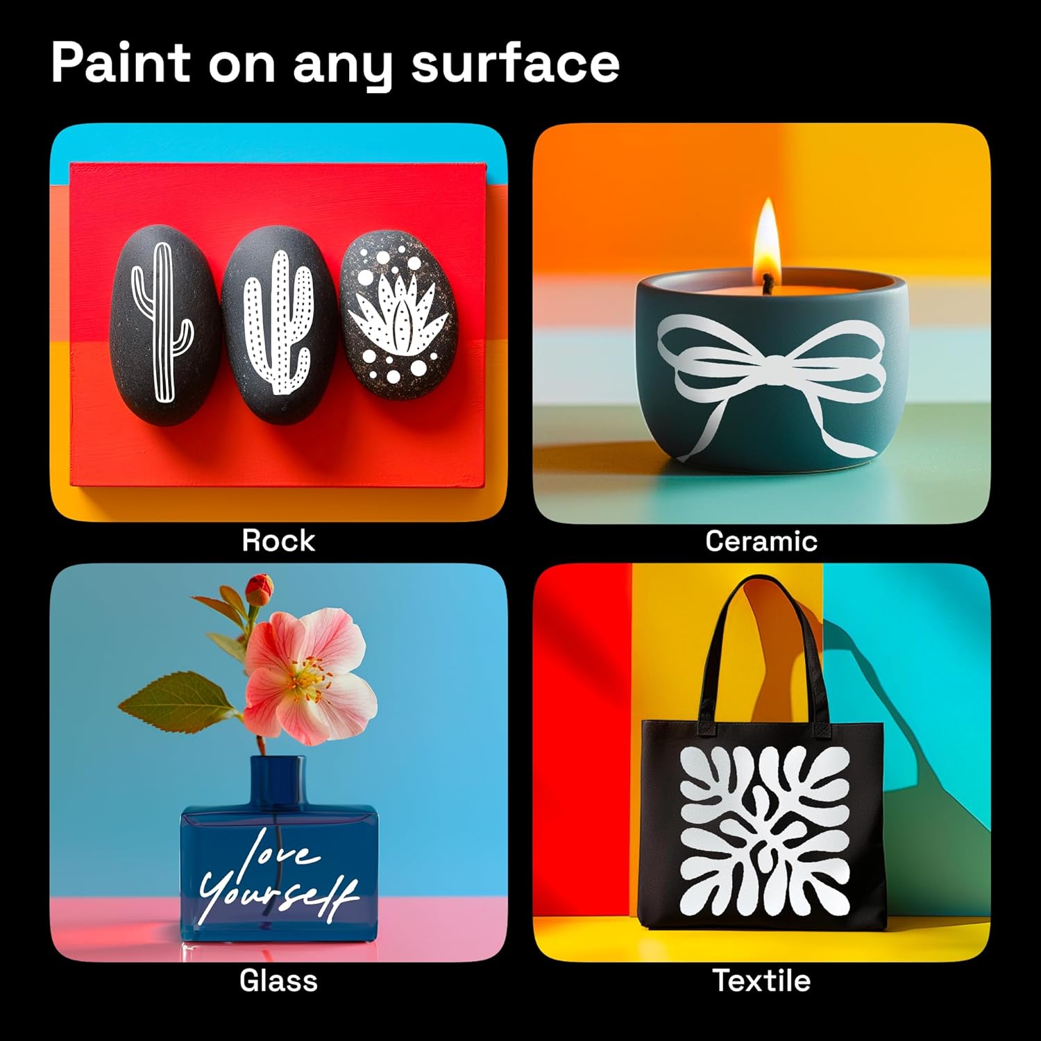 • Non-Toxic: Each paint pen conforms to ASTM D-4236 standards. Both kids and adults, beginners and pros, can rock painting pens and create whatever! These paint pens are perfect for when you just need paint pens for finishing touches on your art projects