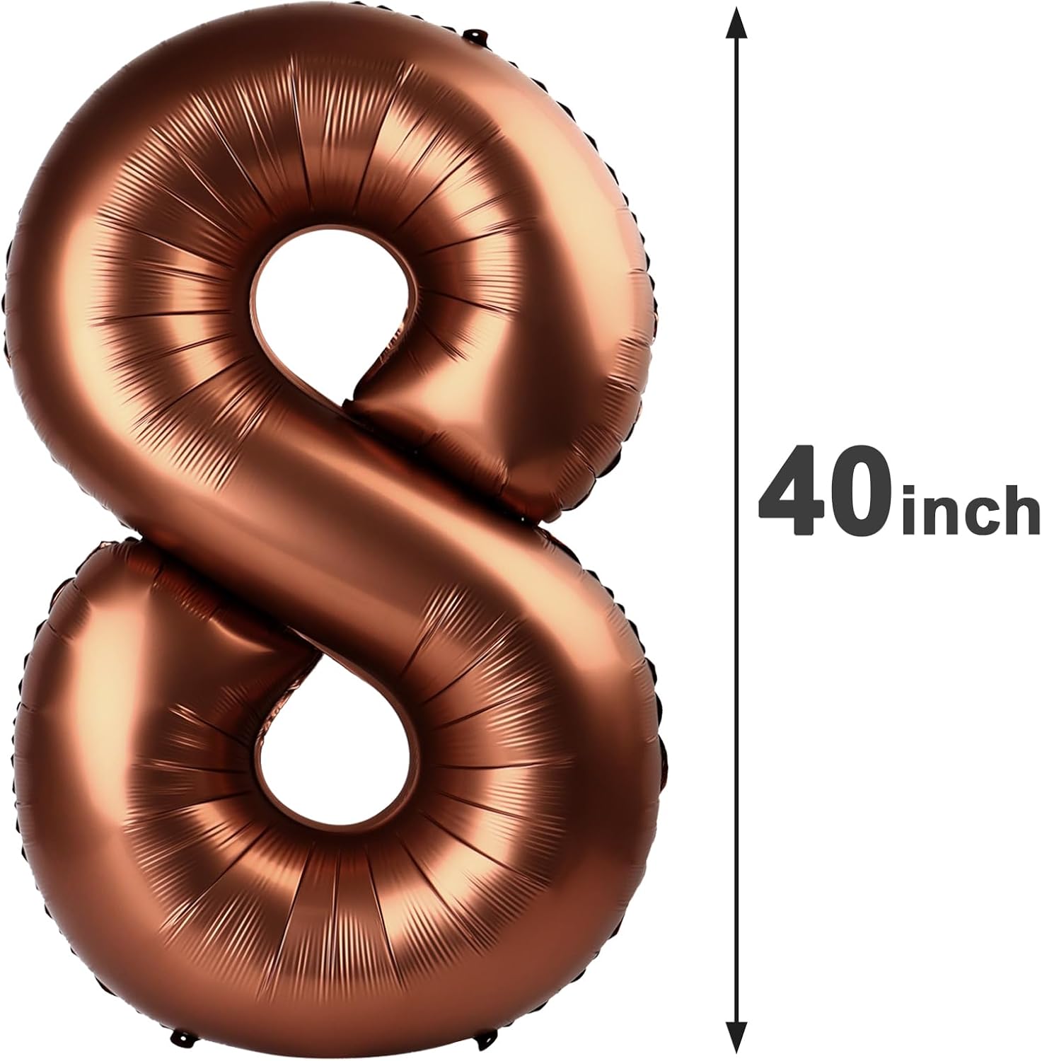 • 1.Make Party Charming with Dark Brown Number Balloon: You will receive an uninflated 40 inch number 8 balloon. Big number balloons are always the best statement of romance and surprise. Coffee brown balloons symbolize vitality exoticism, adding glamour to birthday parties.Bright metallic dark brown and huge size make coffee balloons a highlight of special parties. Choose one or more numbers from 0-9 birthday numbers,and use 8 18 28 38 48 58 68 78 80 98 balloon numbers to create a charming party!