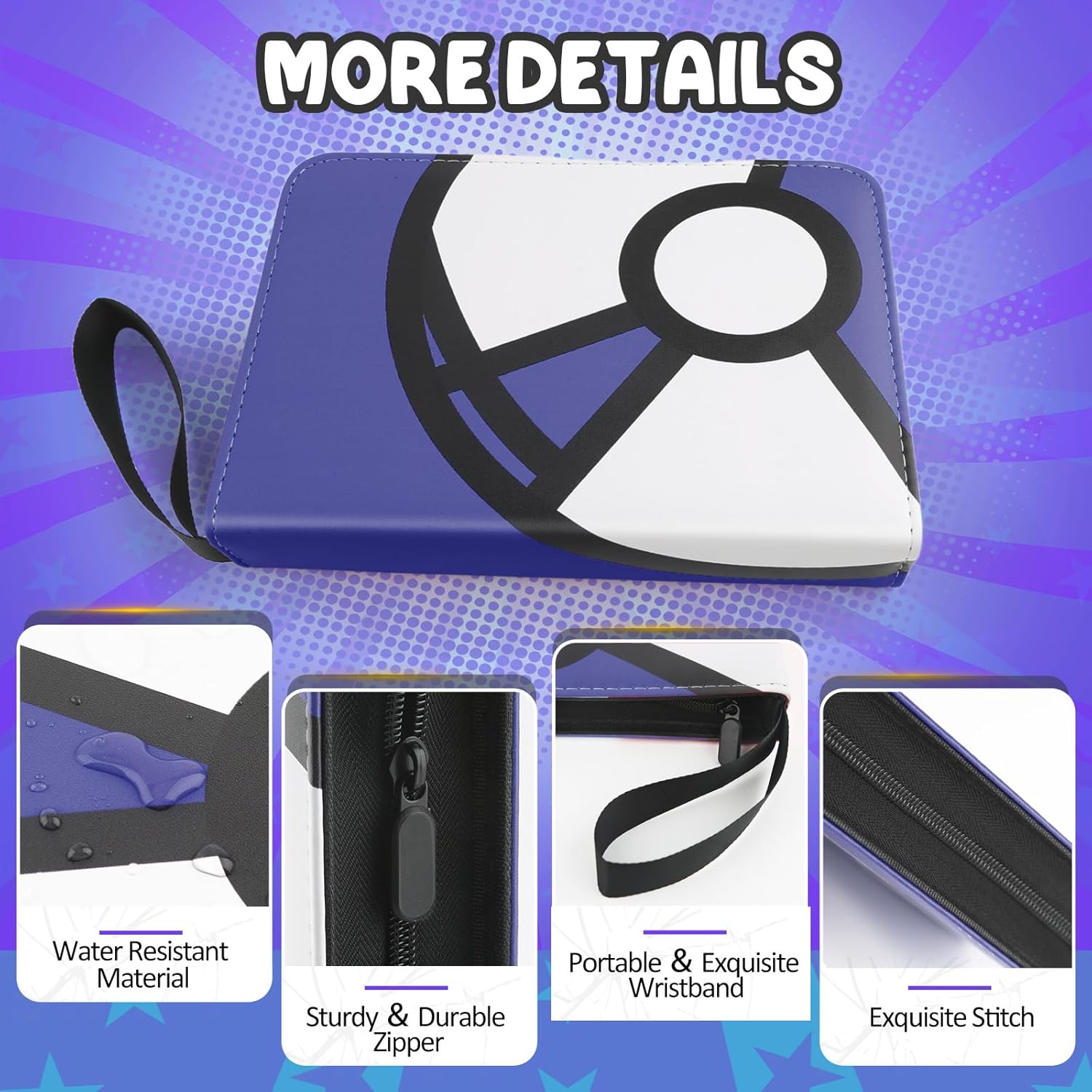 • 【High Quality Card Holder】Our card holder album is crafted from premium PU waterproof material, offering excellent dust resistance. Trading card binder is both stylish and waterproof, ensuring longevity and protection for your collection. The card binder features a durable metal zipper that effectively prevents the cards from falling out, providing enhanced protection for your prized cards.