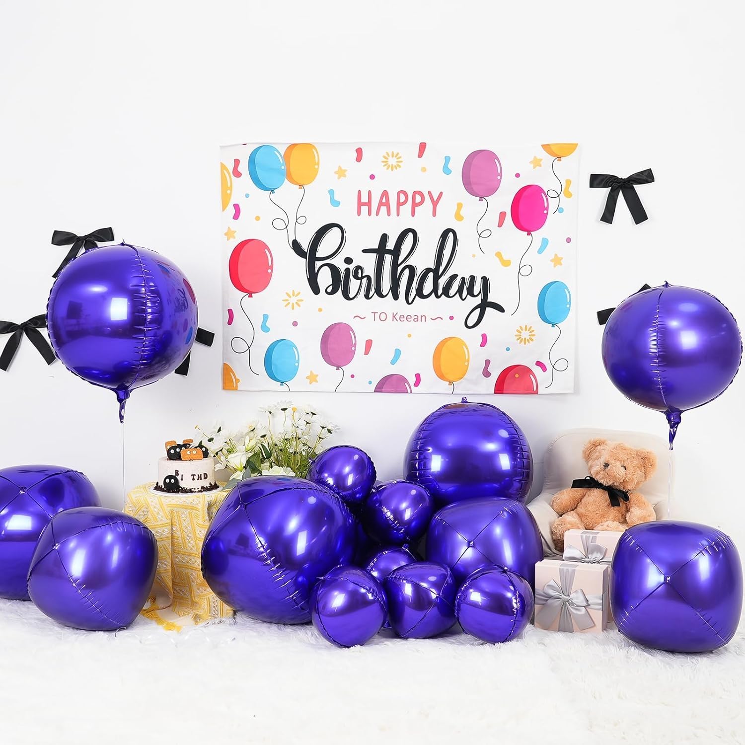 • Package: You will receive 12pcs 4D dark purple round foil balloon, 3pcs 22inch + 4pcs 15inch + 5pcs 10inch + 1 straw + 1 roll of ribbon. Different sizes balloons in can meet your party needs. 10inch mini size balloons do not support helium filling and floating. The classic solid dark purple chrome balloons are perfect for any dark purple-themed party.