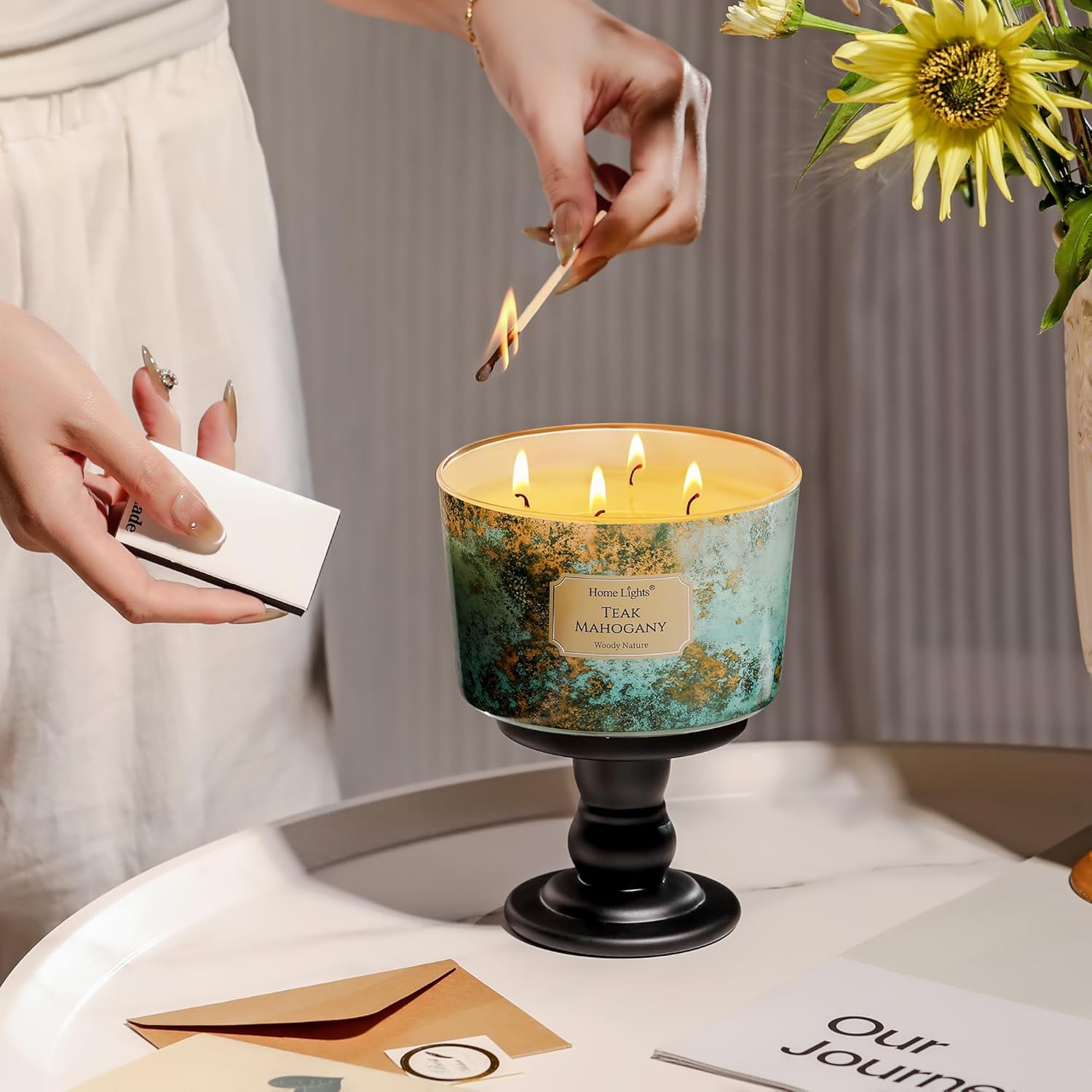 HomeLights Large jar Candle | 4-Wick Long-Lasting Scented Candles, 18oz Natural Soy Wax Candle for Home Scented, Industrial Chic Gifts for Women & Men, Teak Mahogany