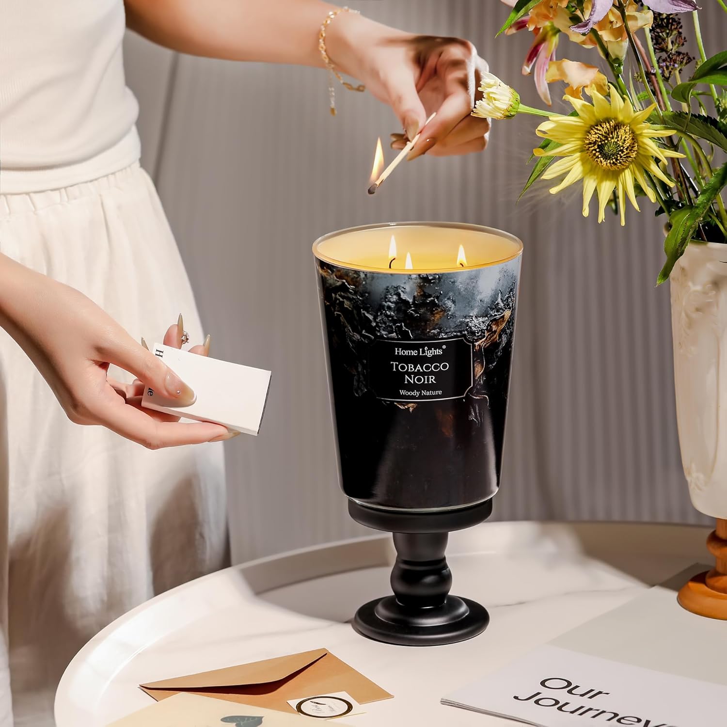 HomeLights Scented Candles for Women & Men, 34oz Candle Jars Aromatherapy 3-Wick Candle, Ideal for Industrial Chic Home Decor and Gifts, Tobacco Noir