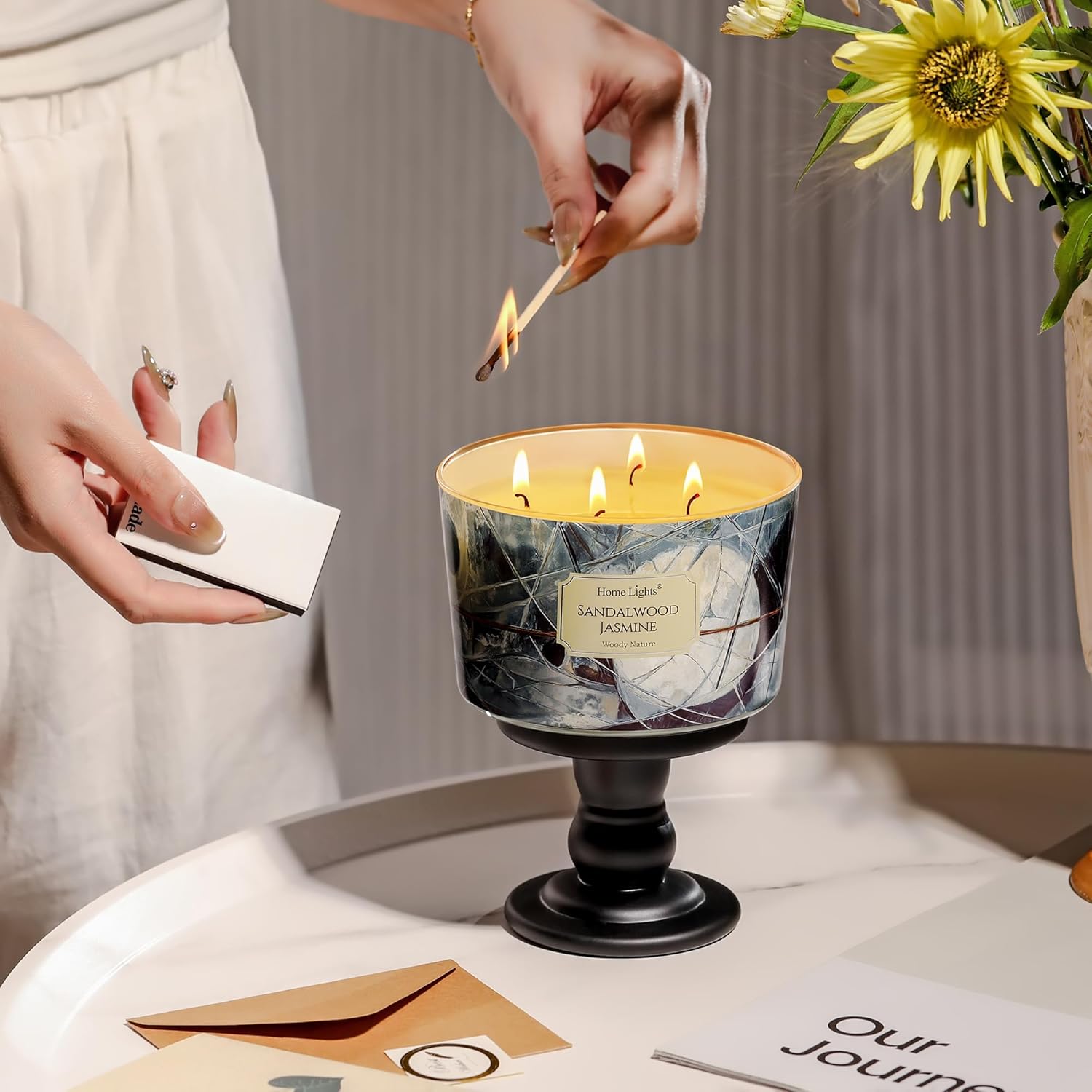 HomeLights Soy Wax Candles for Home Scented, 4-Wick Candles in Sandalwood Jasmine Scented, Industrial Chic Aromatherapy Candles Gift for Parties, Relaxing, 18oz
