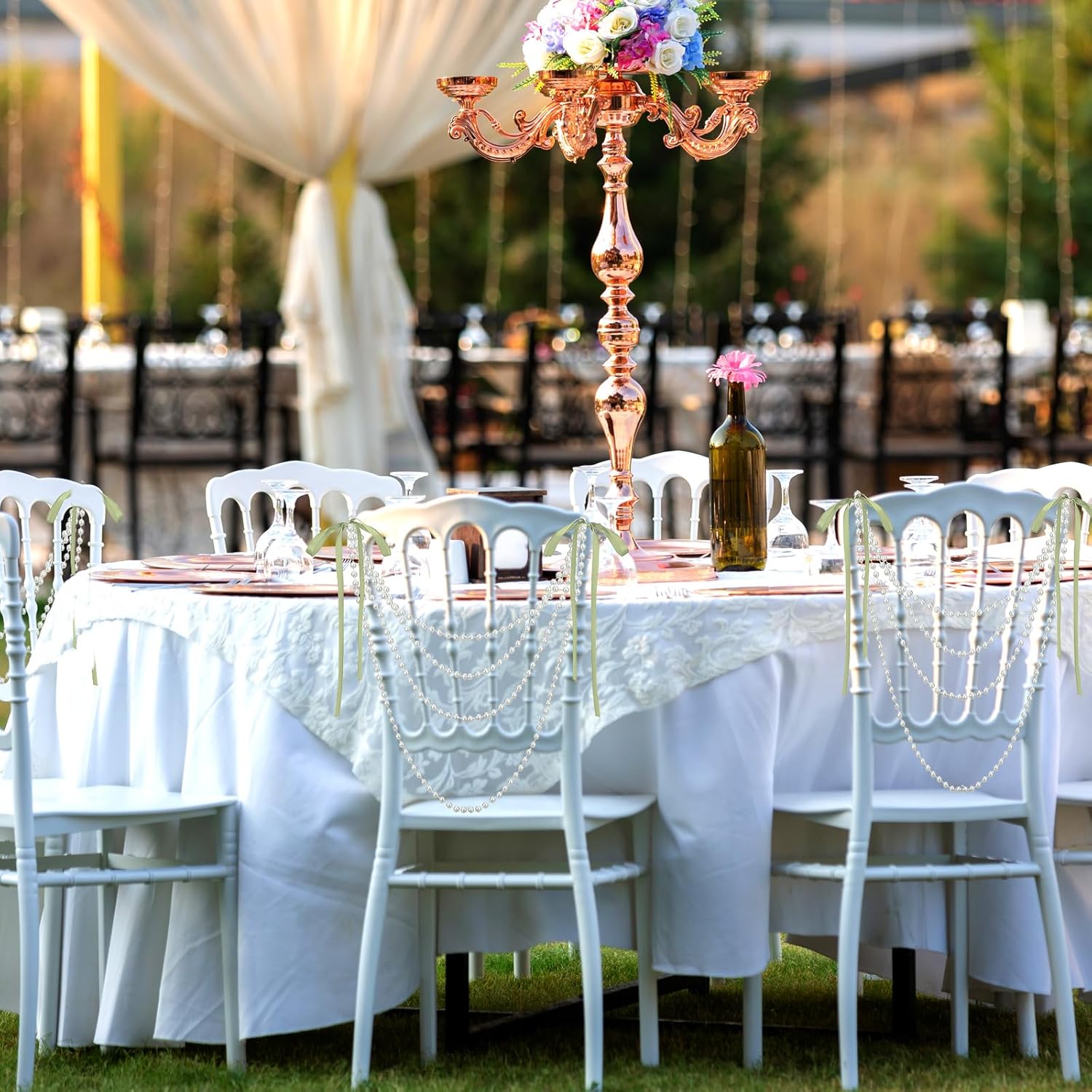 • Sufficient Quantity for Versatile Use: this package includes 16 wedding chair back garland sash with pre tied gray green bows, providing ample quantity for most applications; Whether you're decorating for a wedding, party, or special event, the large quantity allows for creative arrangements, such as pearl chair back garlands or beautiful centerpieces, ensuring your decor is visually appealing and eye catching