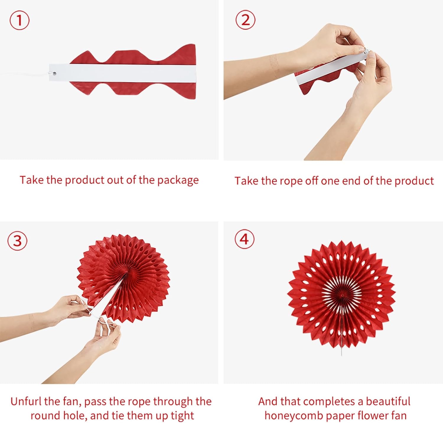 • 【Easy to assemble and uniquely designed 】These hanging paper fans have a hanging string attached,just unfold the paper flower fan and fix it with the rope of the paper flower fan, then you can hang it to your favorite place and decorate your party perfectly in a few minutes.