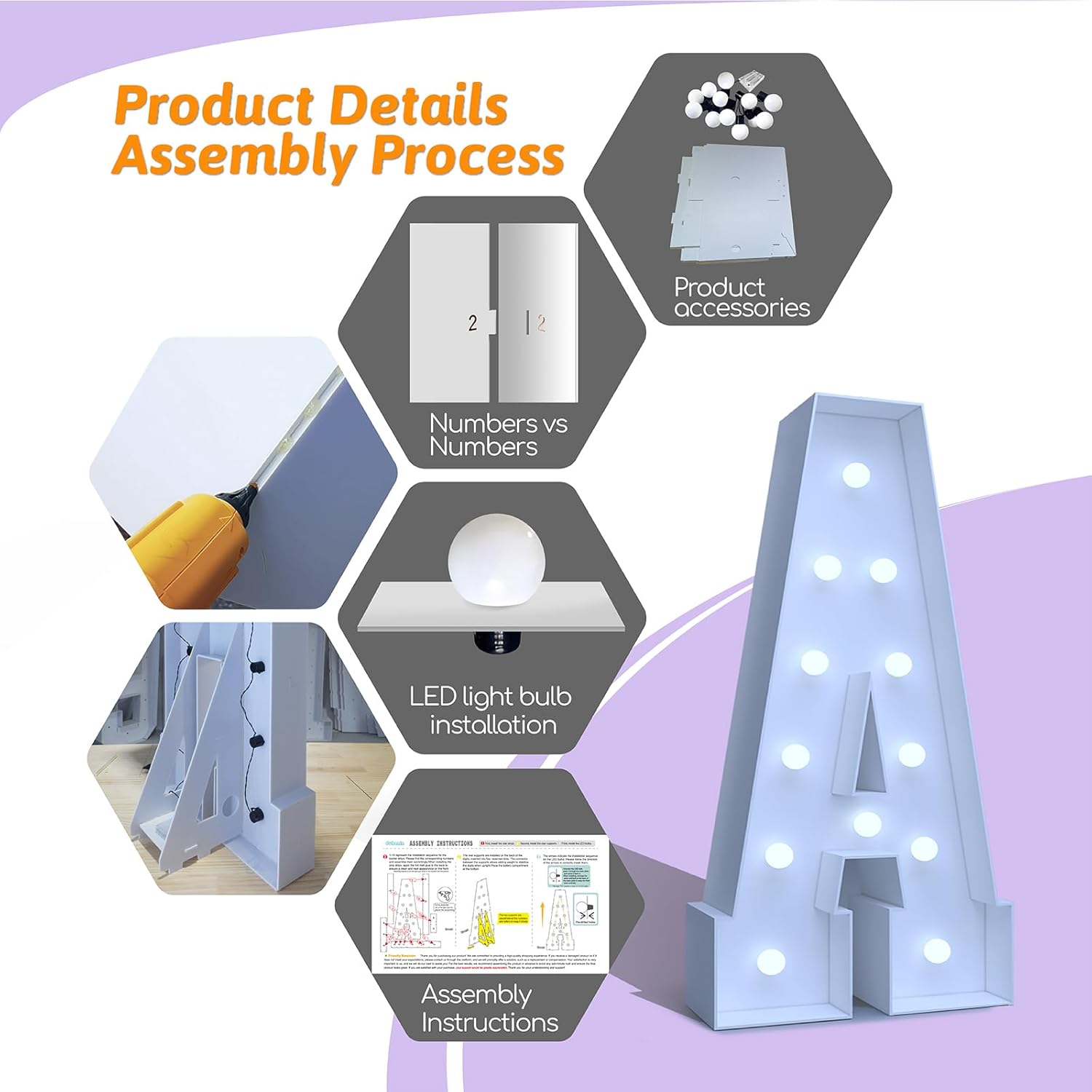 • Quality guaranteed & 12-hour customer support. We offer high-quality marquee letters/numbers with excellent service. If damaged in transit, contact us for a quick resolution. Order now to elevate your event with stunning light-up décor