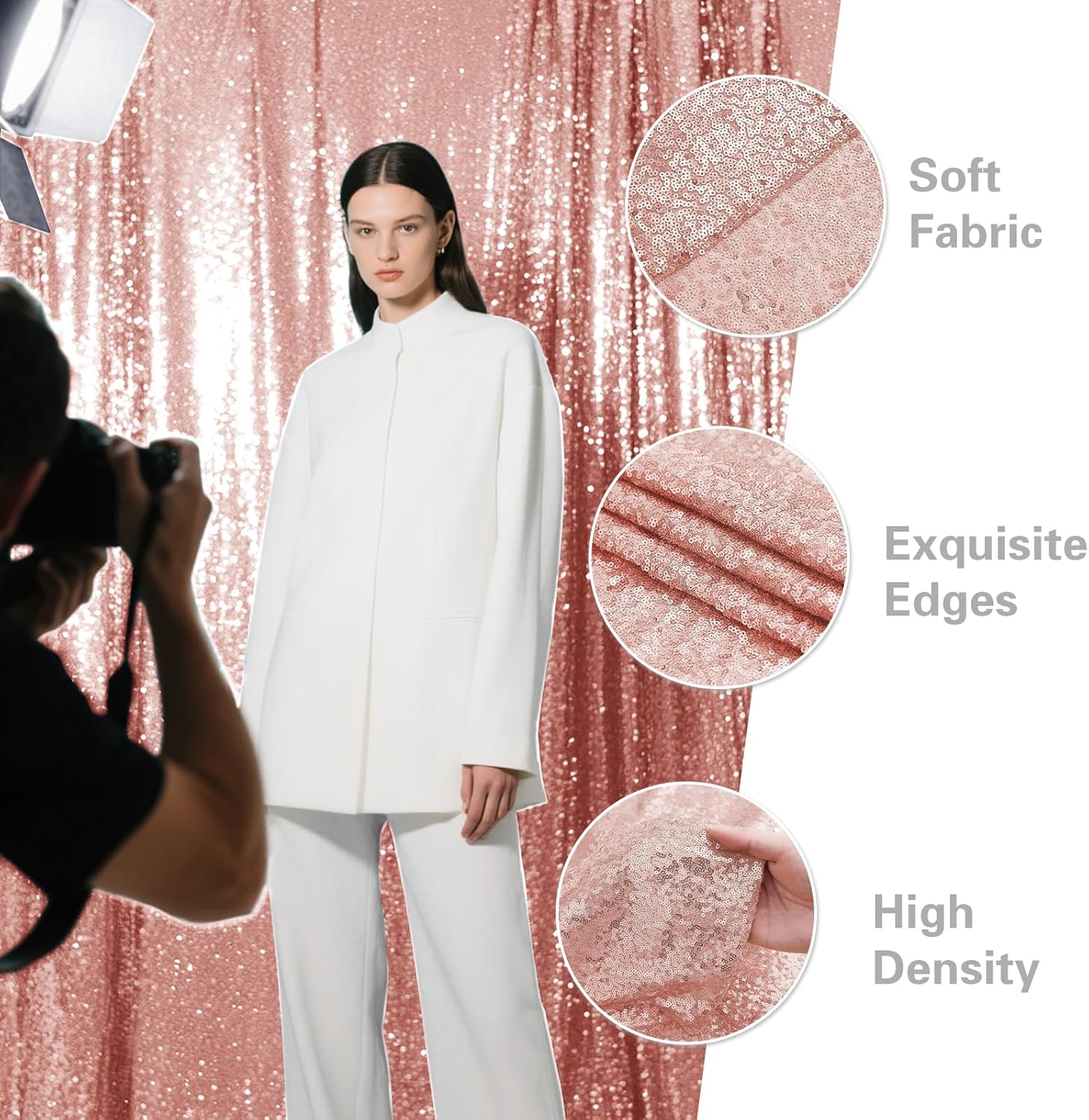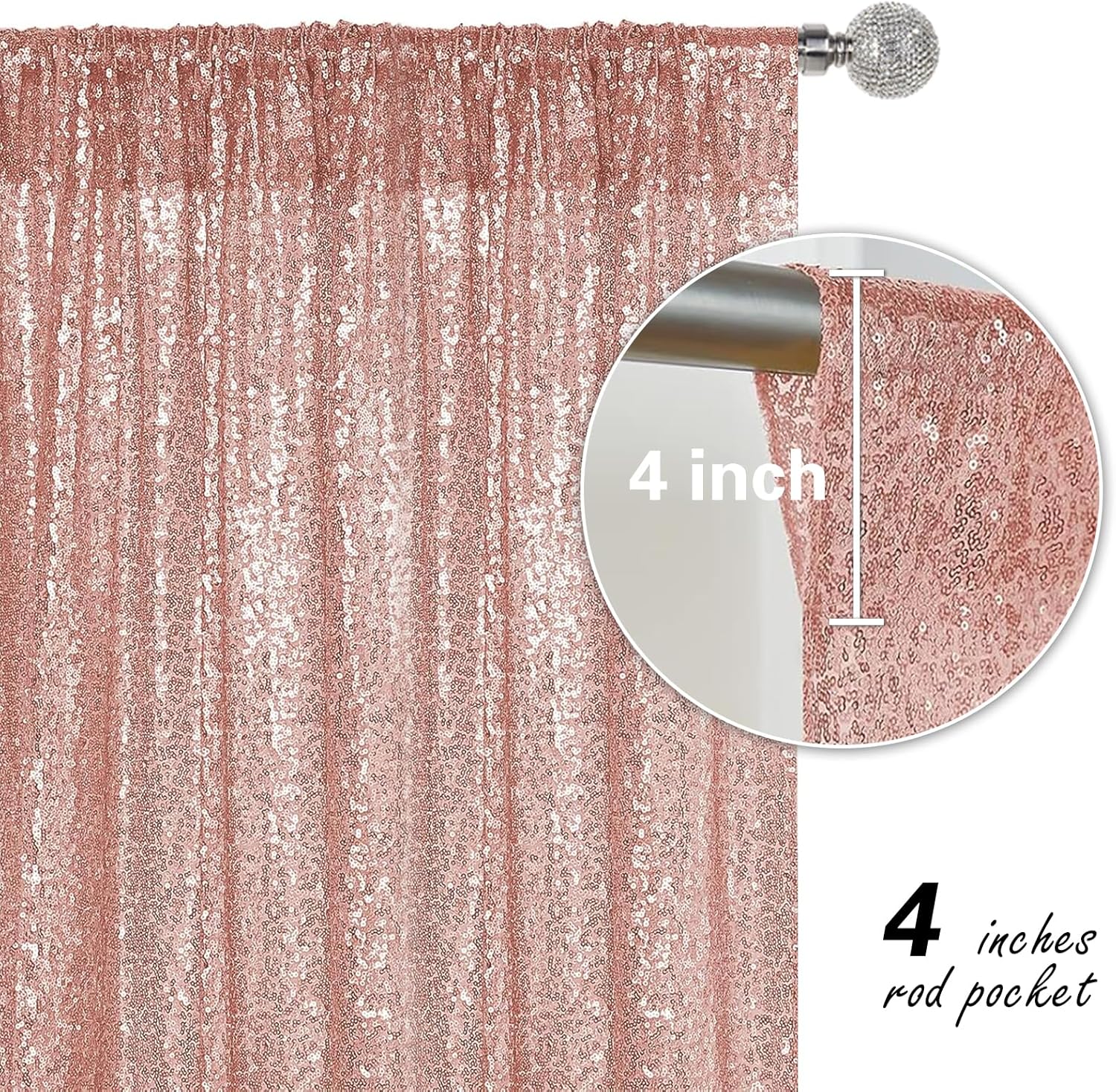 Rose Gold Sequin Backdrop Curtain 4 Pieces 2FTx8FT Glitter Photography Backdrop for Party Wedding Birthday Christmas Decorations