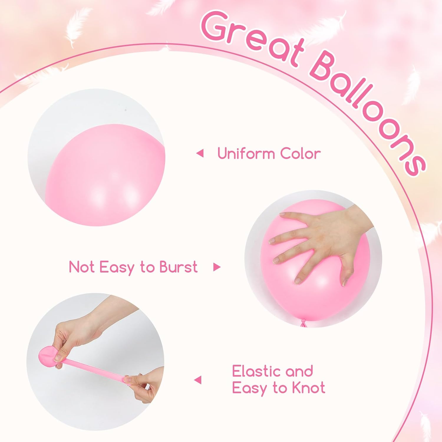 • Great Balloons: The pastel yellow and pink balloons are made of great latex, which is thick and not easy to pop. They can be filled with air or helium, lasting a long time when properly inflated. To ensure the good experience, inflate quickly with a balloon pump and avoid overinflating to maintain their shape