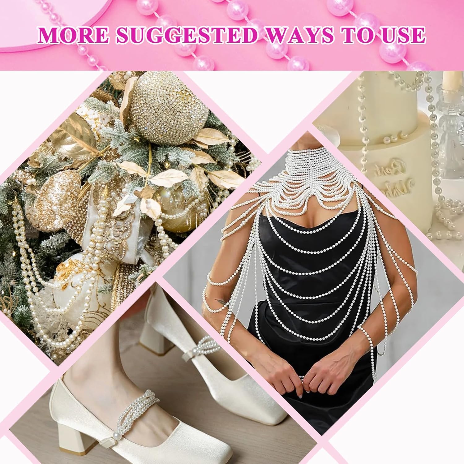 • Materials: These faux pearl garland are made of plastic ABS pearl beads, which are attached to the string and can not be removed. These pearl beads strings are both economical and add a beautiful touch to any project. Great for Shabby chic or Bridal decoration embellishment decor or even place them in the hair