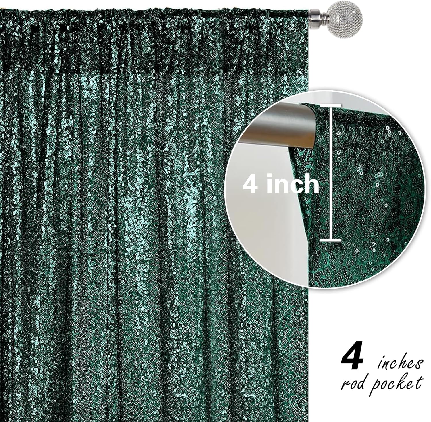 Dark Green Sequin Backdrop Curtain 4 Pieces 2FTx8FT Glitter Photography Backdrop for Party Wedding Birthday Christmas Decorations