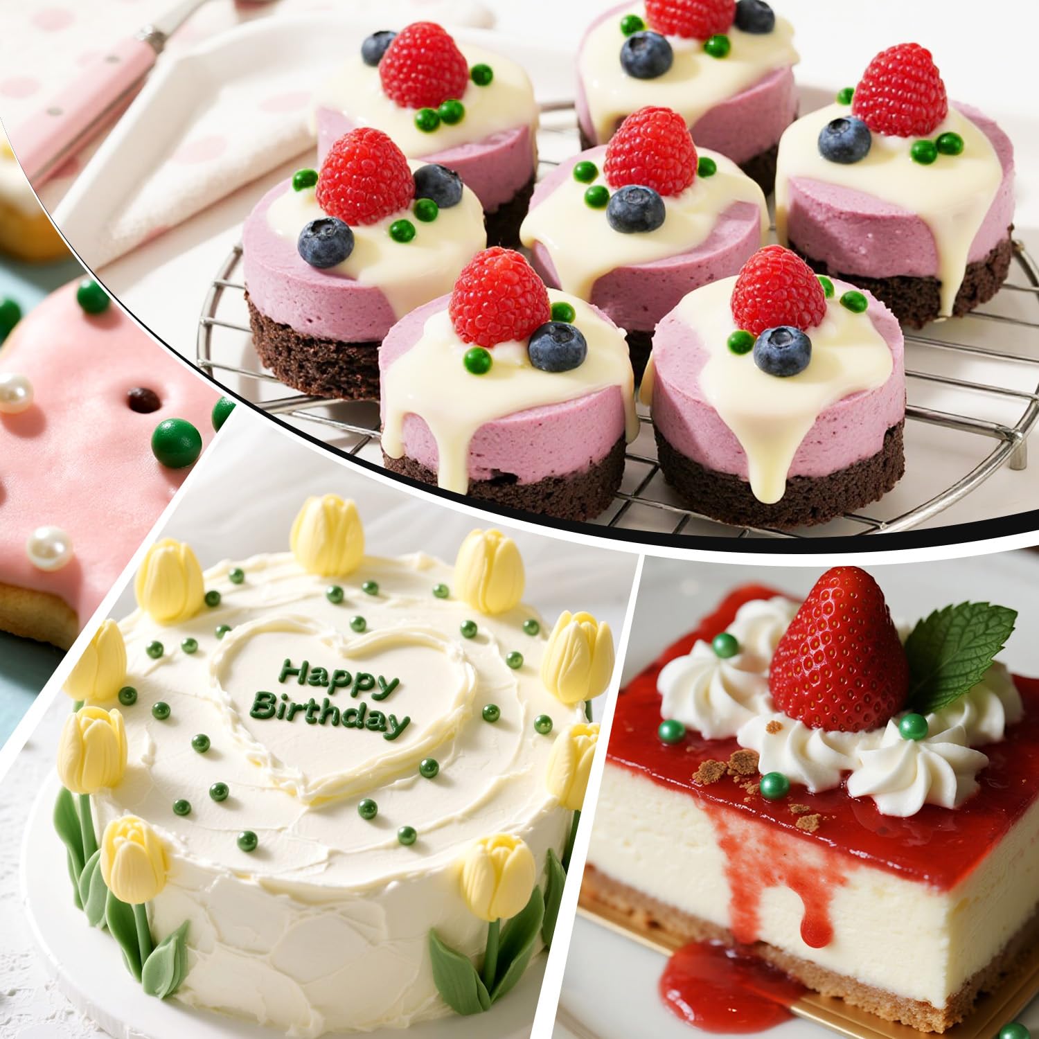 • These Edible Deep Green Pearl Sprinkles feature a mixed-size design. They are a perfect match for cakes, cupcake toppers, donuts, decorating cookies, ice cream, waffles, and any dessert you can imagine to turn them into a baking delight.